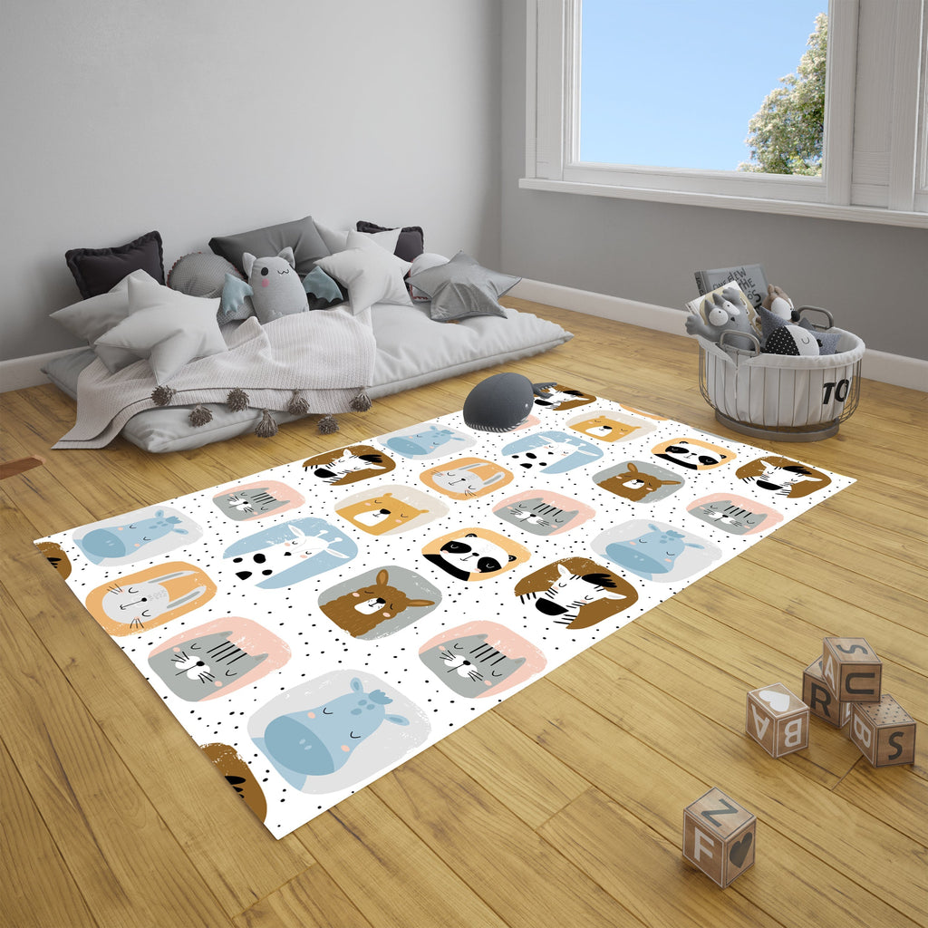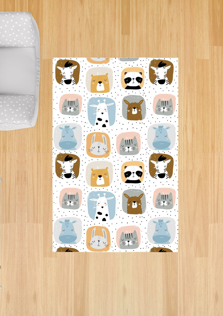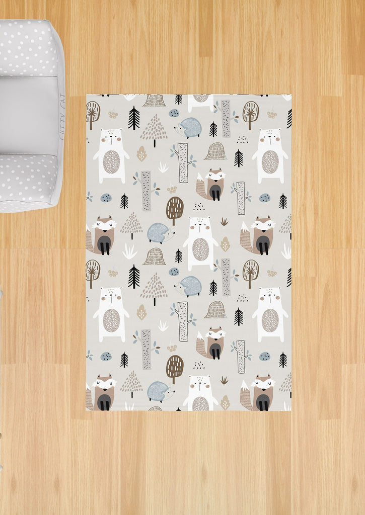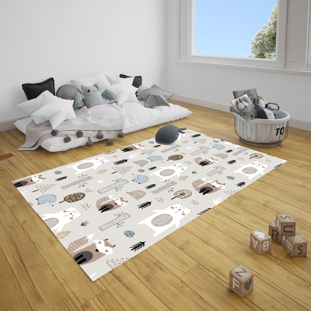 İskandinav Stili Orman Hayvanları, Yuvarlak, Kaymaz Tabanlı, Anti Alerjik, Bambu, Çocuk Odası Halısı