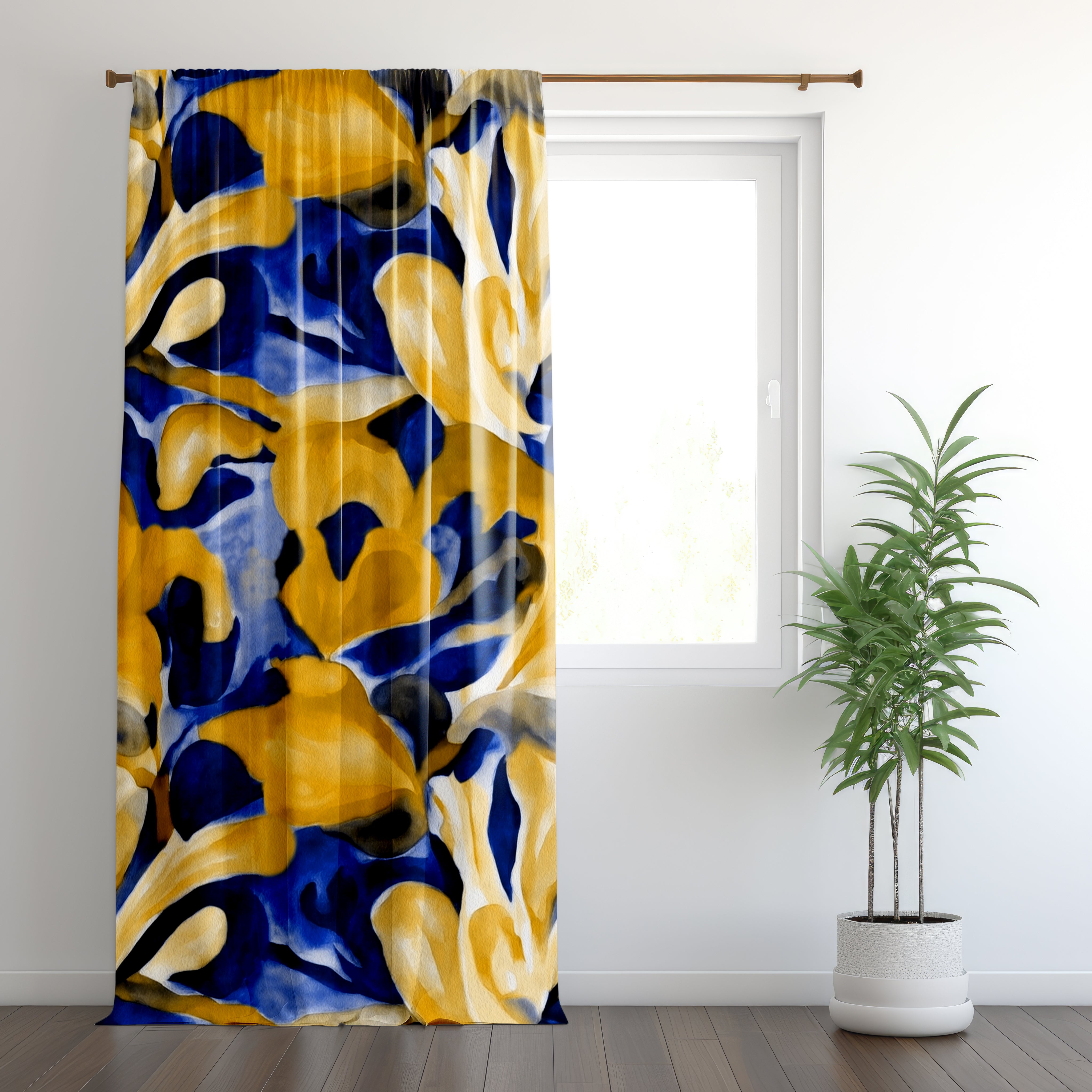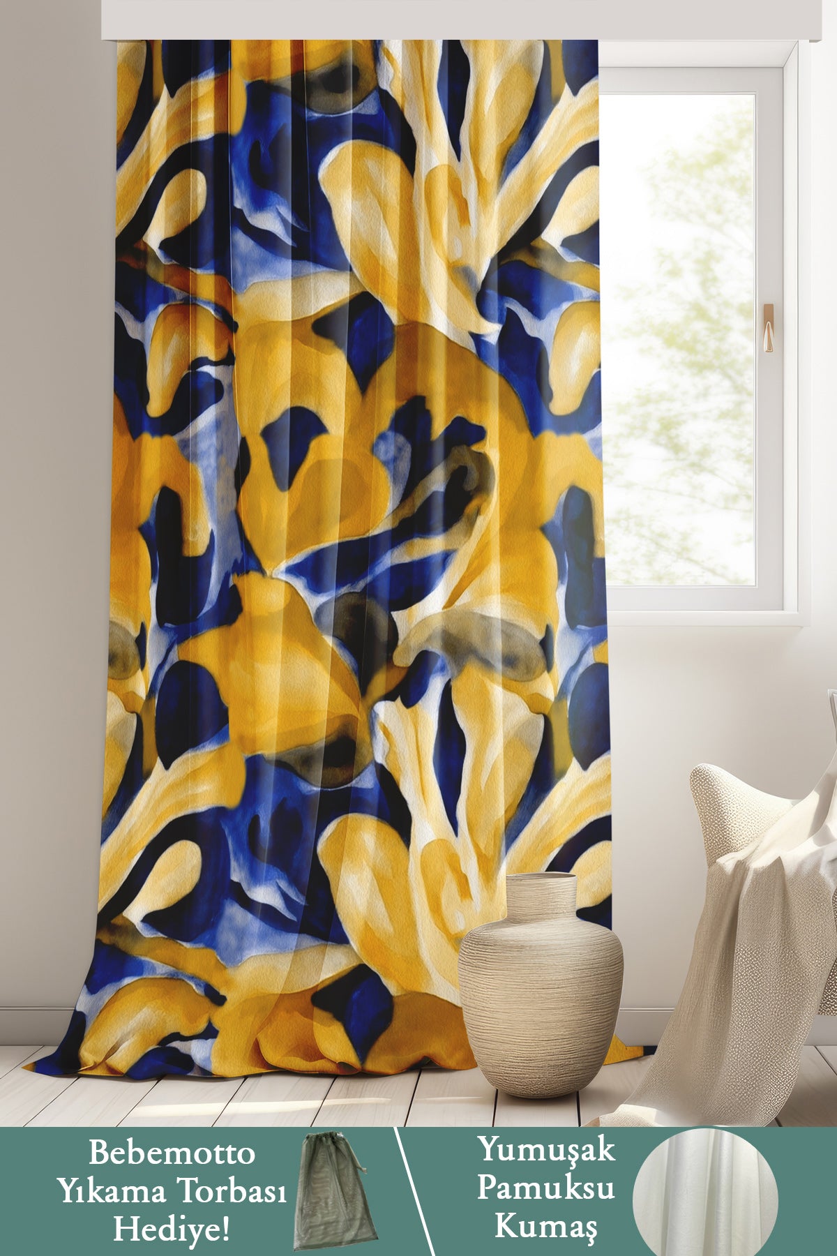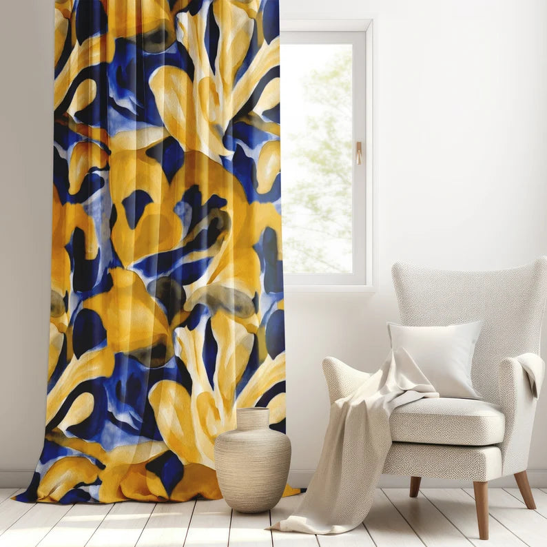 Soyut Çiçekler, İthal Kumaş, Dekoratif Perde - Tek Kanat