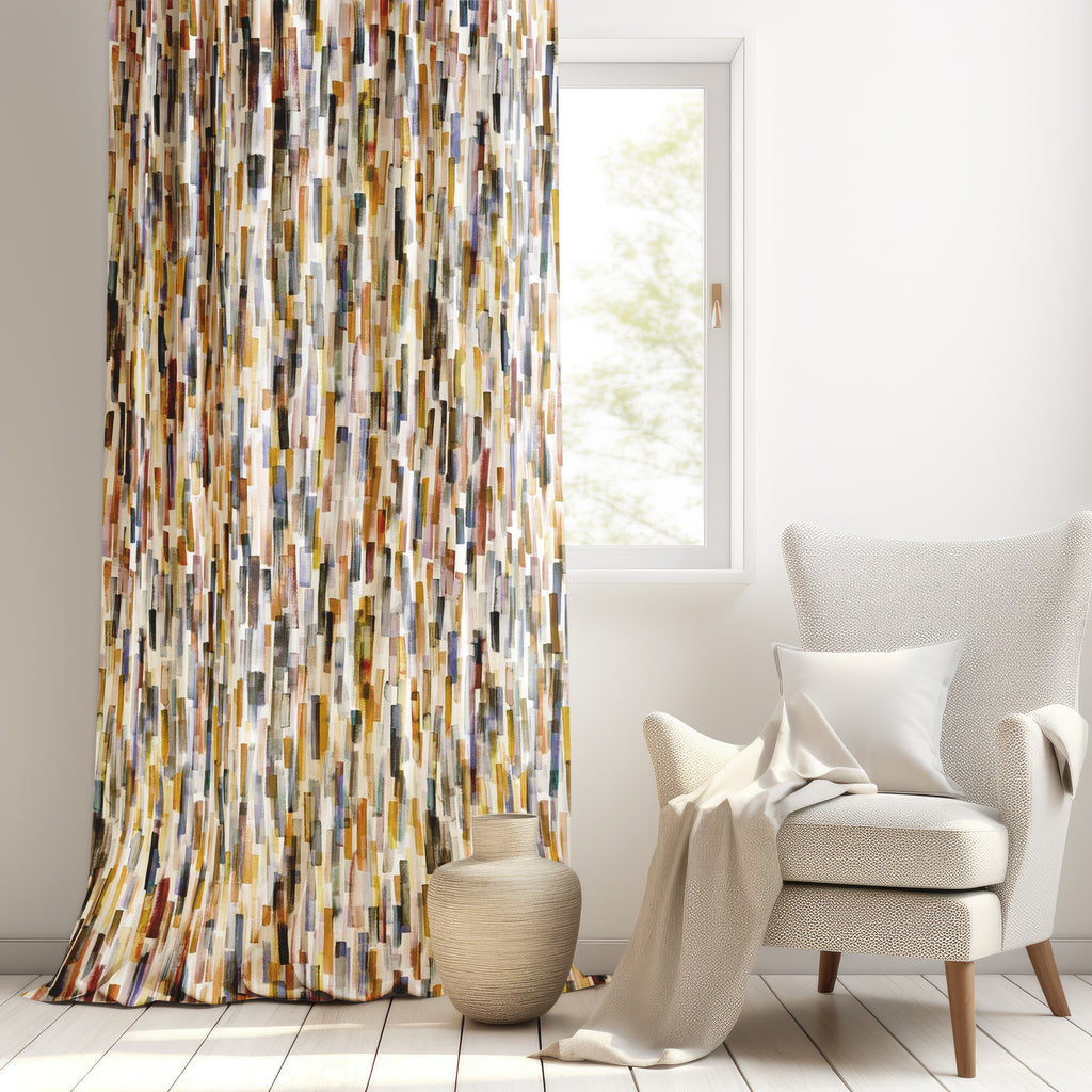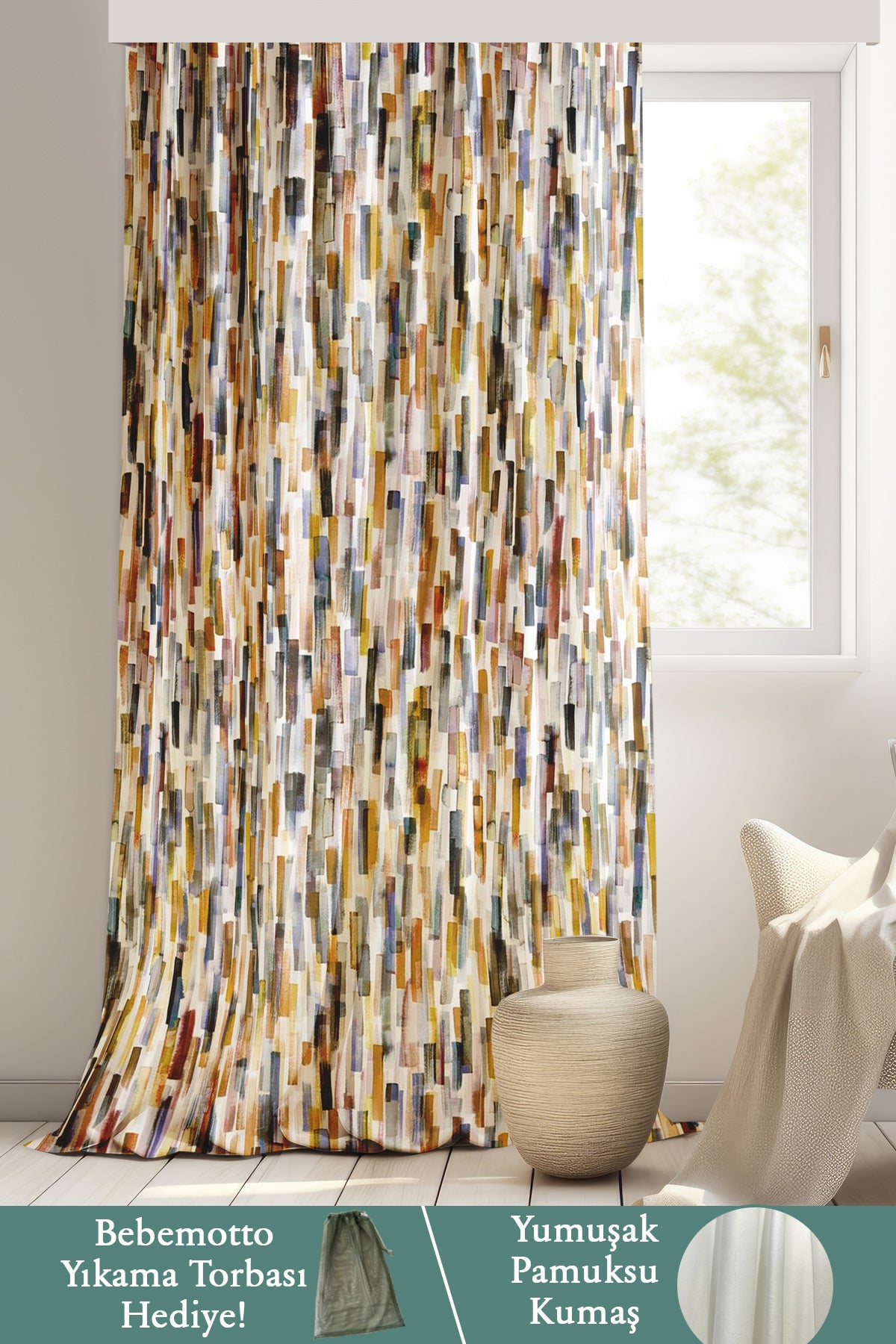Renkli Dikey, Bohem Modern, İthal Kumaş, Çalışma Odası, Dekoratif Perde - Tek Kanat