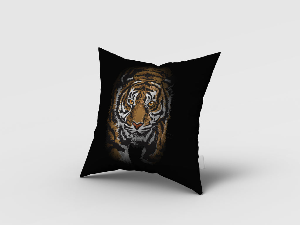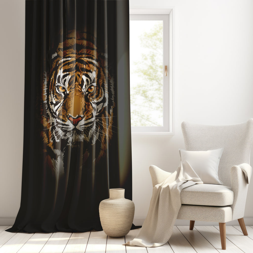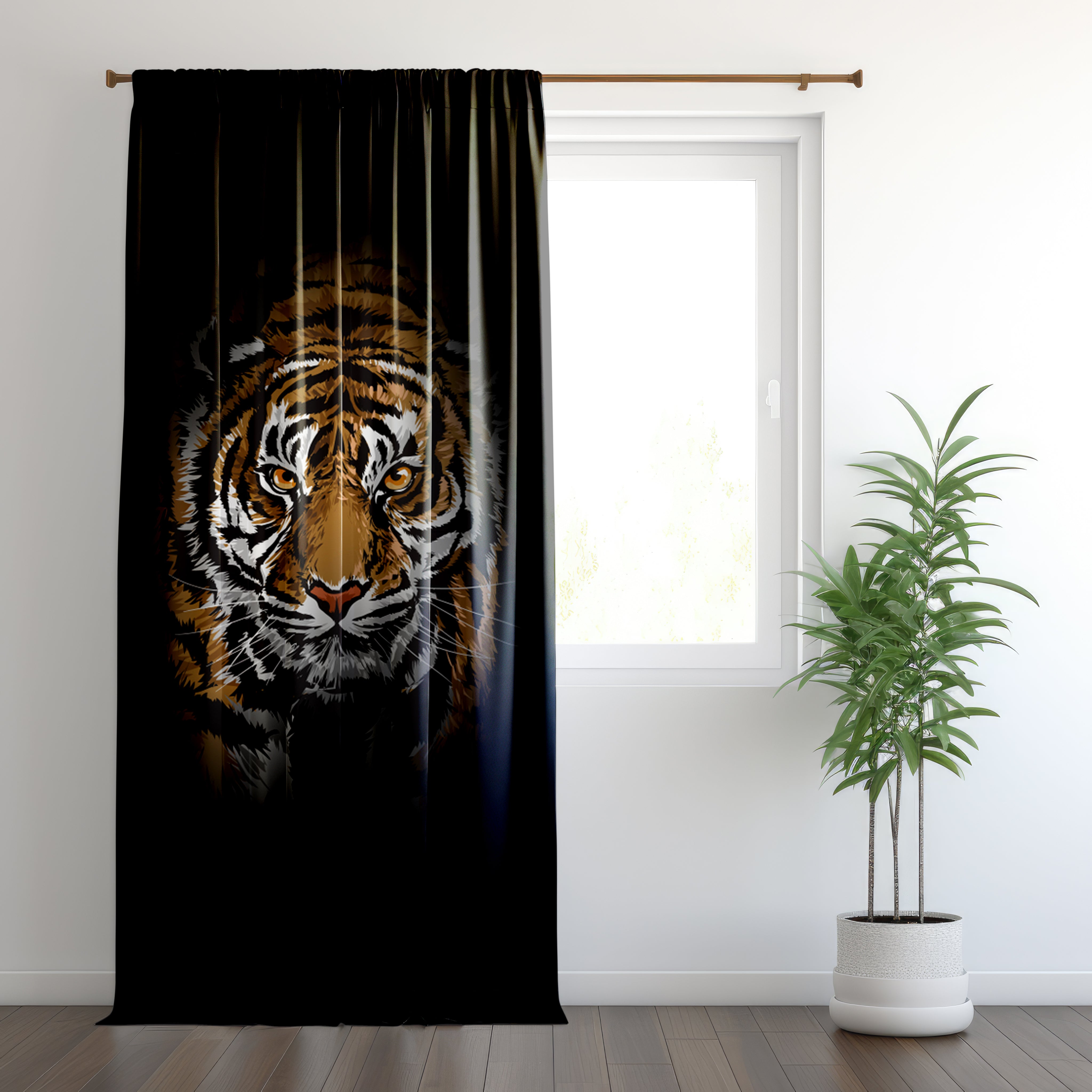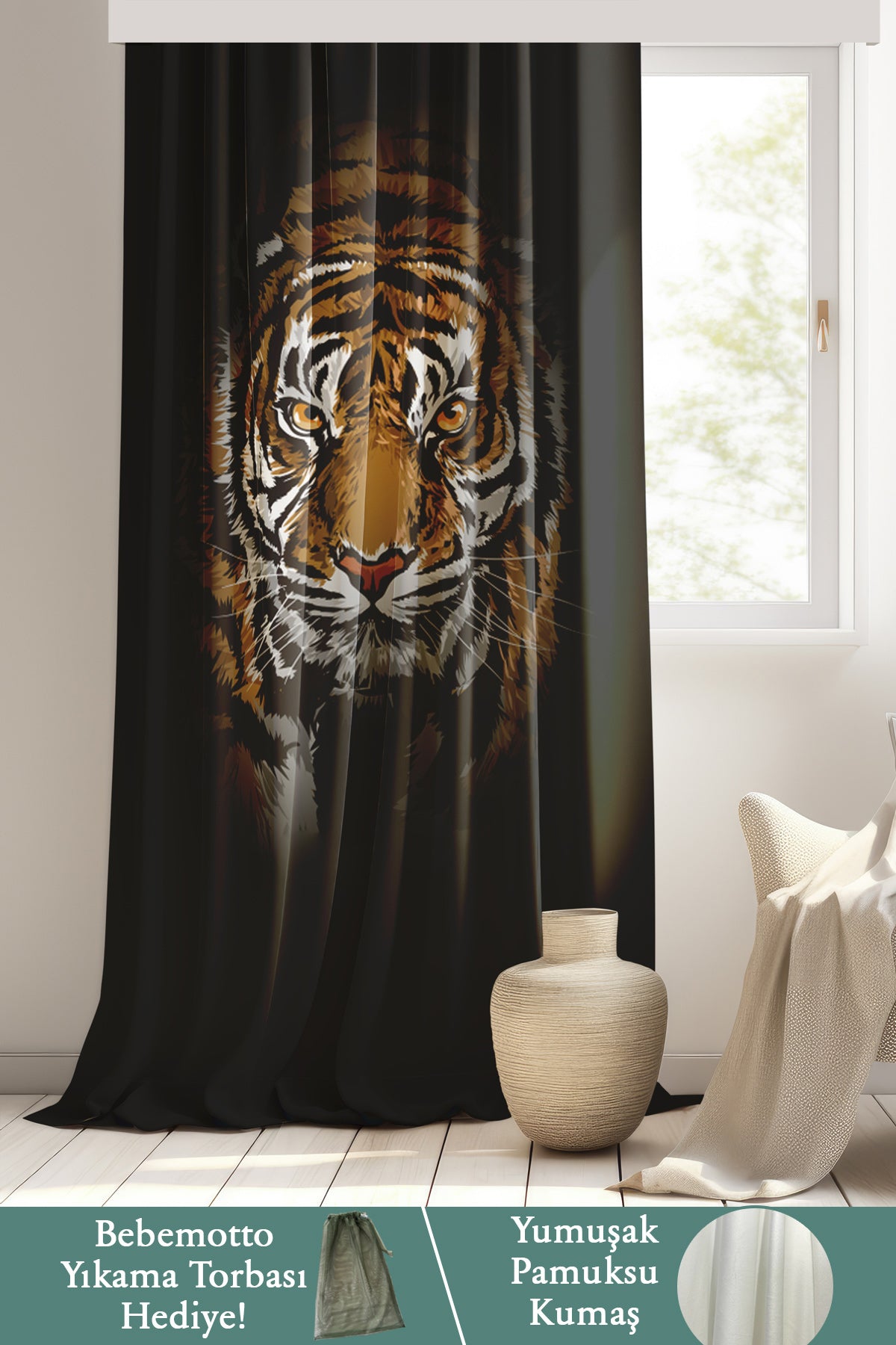 Siyah Zeminli Kaplan, İthal Kumaş, Dekoratif Perde - Tek Kanat