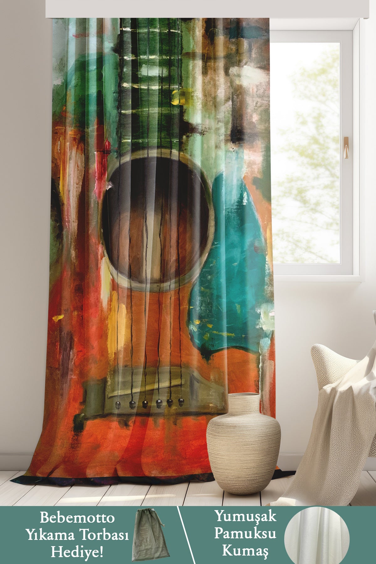 Müzisyen, İthal Kumaş, Dekoratif Perde - Tek Kanat