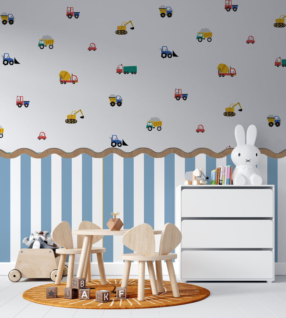 Çocuk odaları için özel tasarladığımız dekoratif renkli çizgili duvar stickerı, sade duvarları bir anda canlı ve modern bir alana dönüştürüyor.