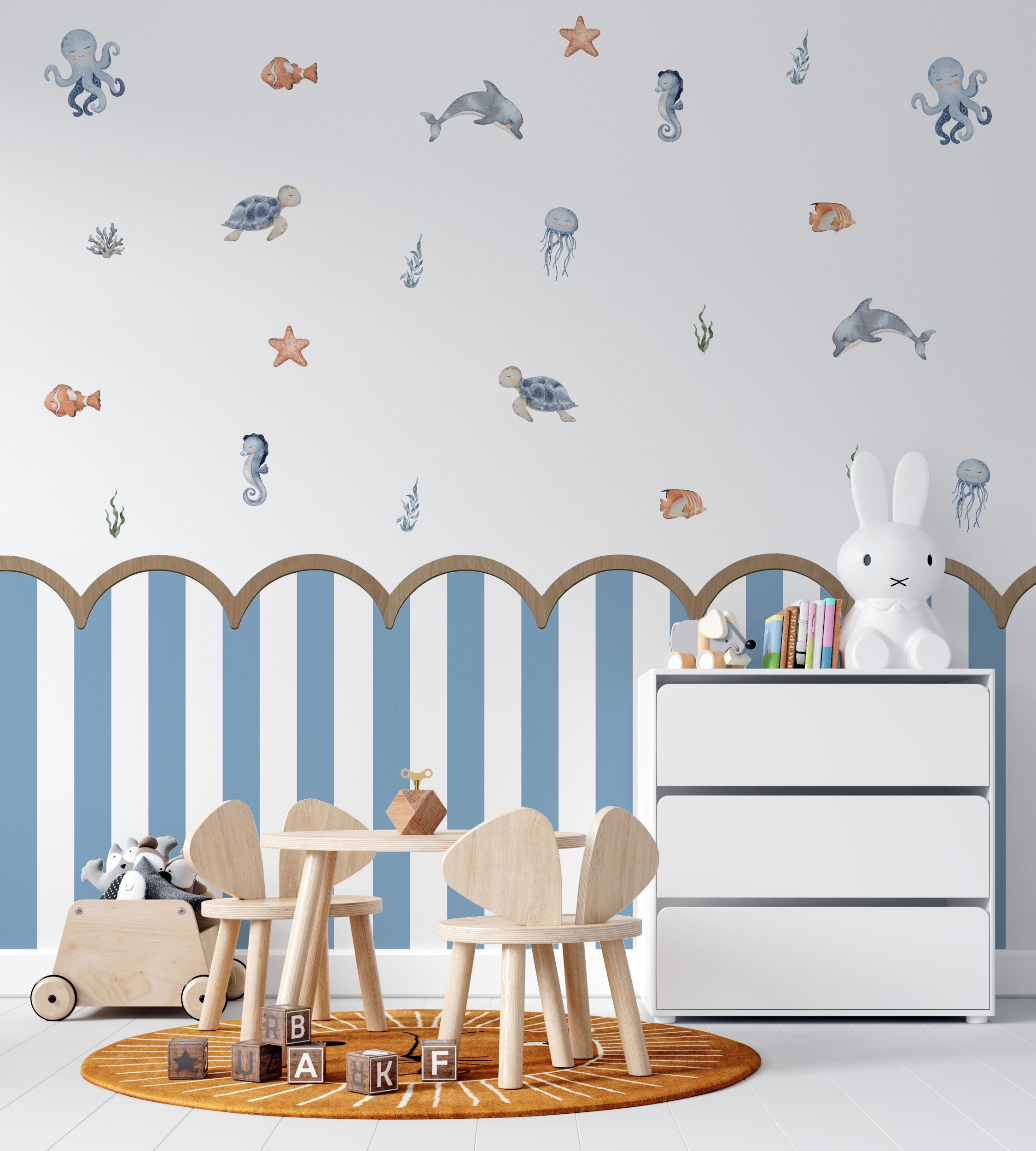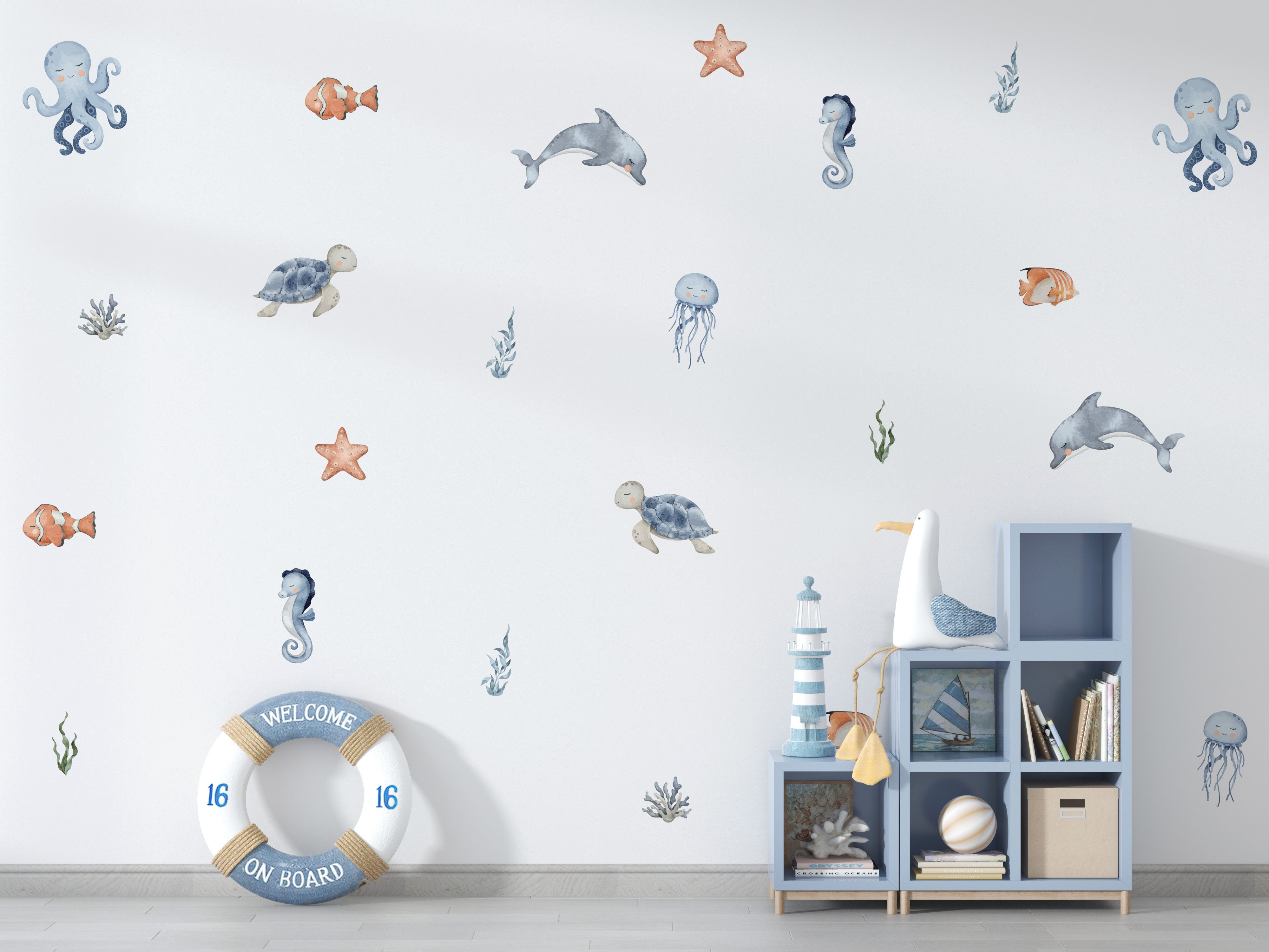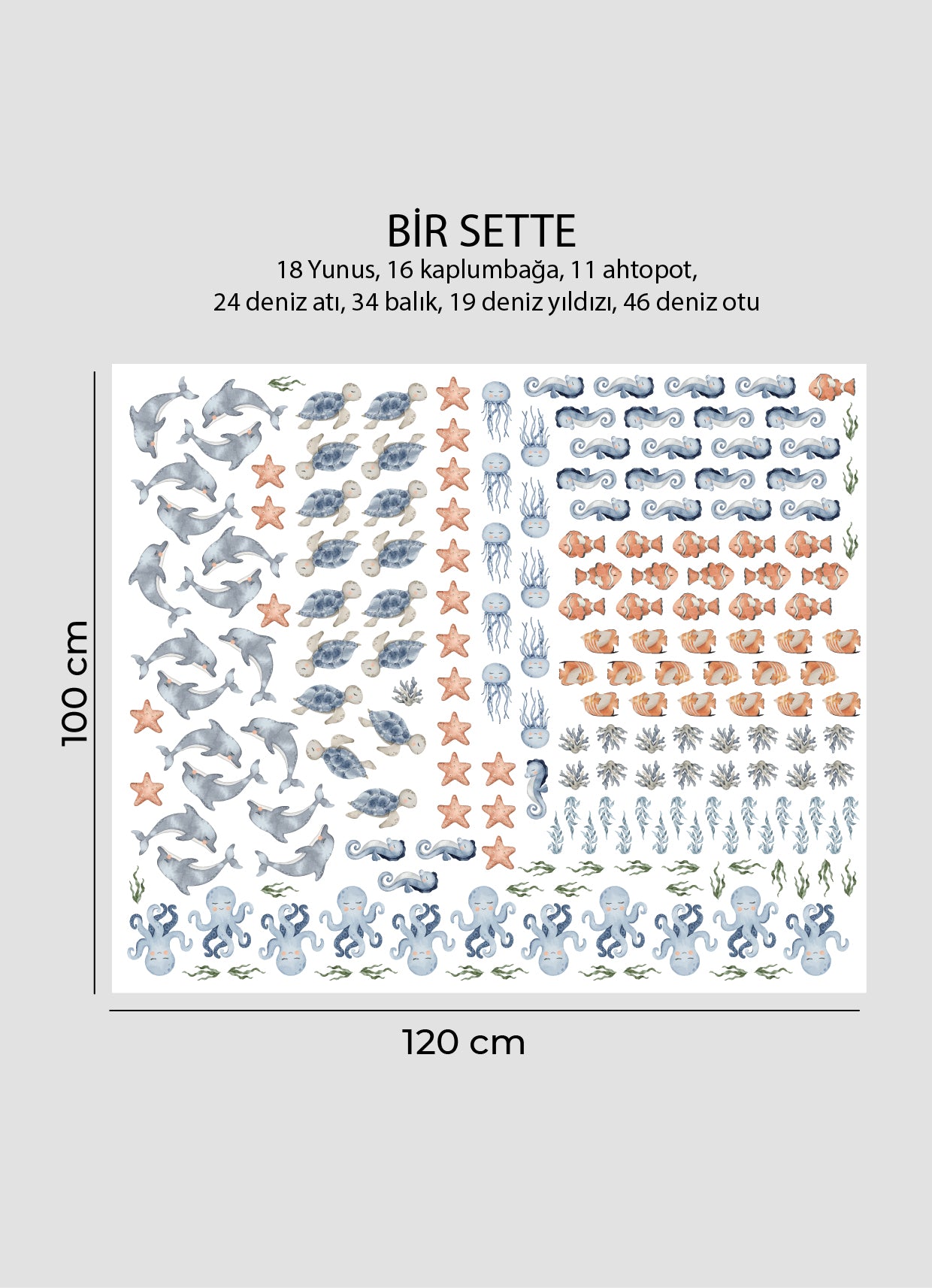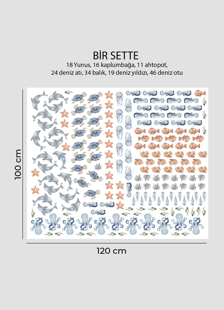 Çocuk odaları için özel tasarladığımız Okyanus Canlıları duvar stickerı, sade duvarları bir anda canlı ve modern bir alana dönüştürüyor.