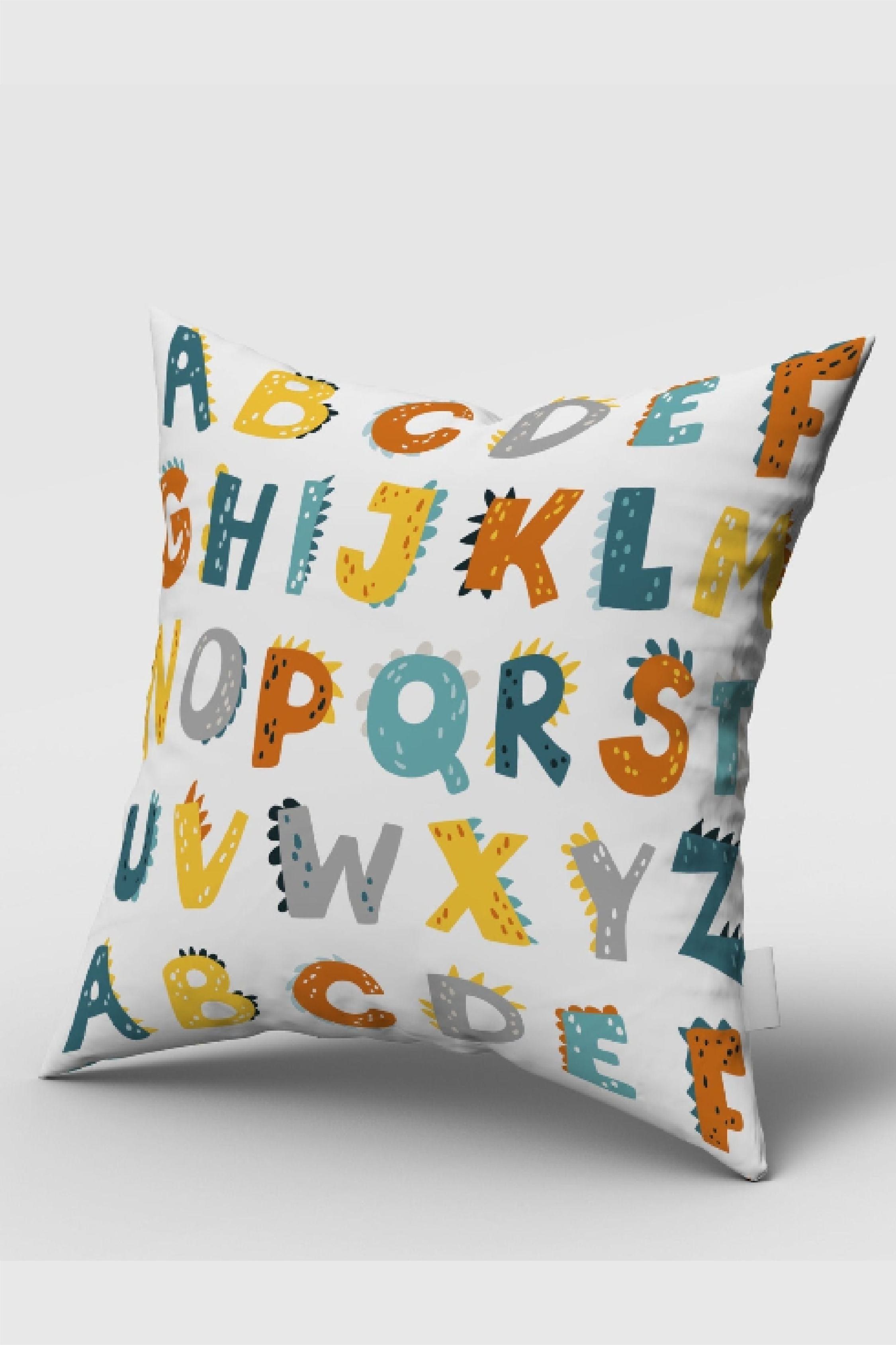 Alfabe, Çift Taraflı, İthal Kadife Kumaş, Çocuk Bebek Odası Kırlent Kılıfı