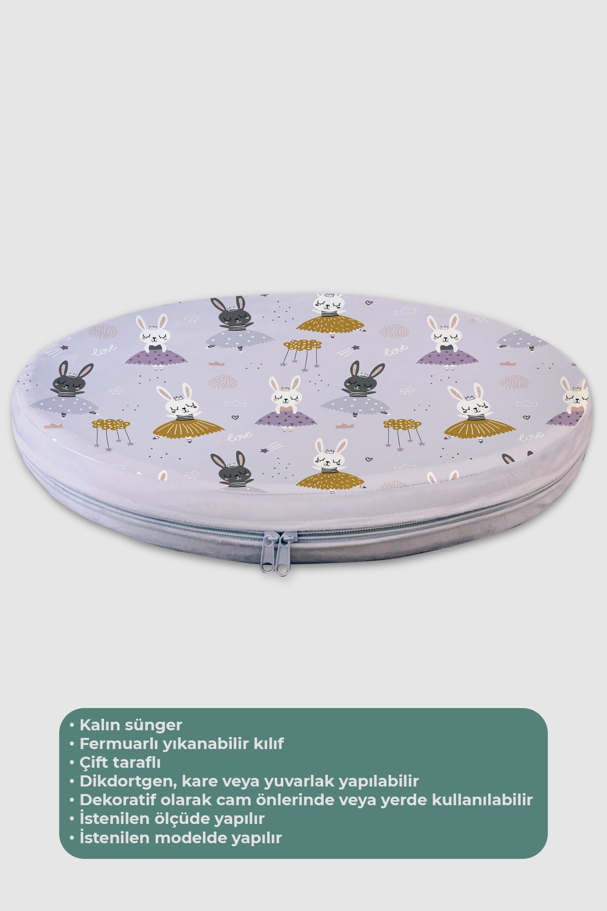 Balerin Tavşanlar, Yer Minderi - 50*50 Kare Tekrar sipariş verilir ve stokta yoksa gönderilir