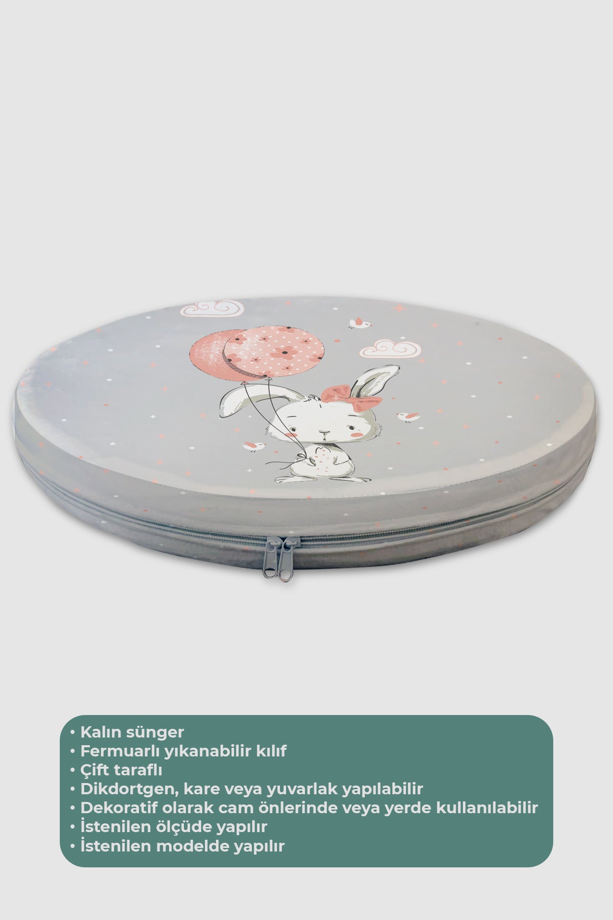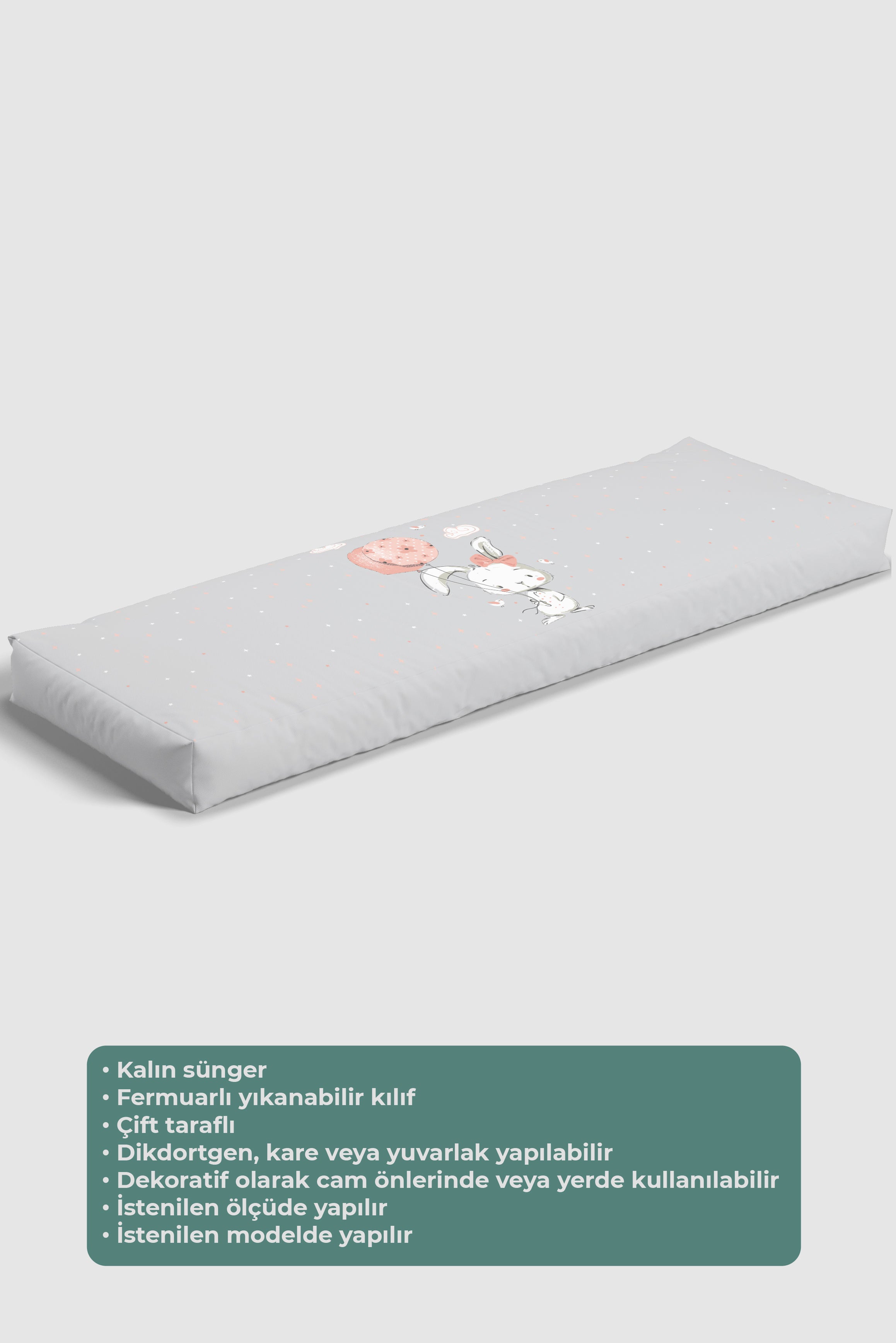 Balon Tutan Tavşan, Yer Minderi - 50*50 Kare Tekrar sipariş verilir ve stokta yoksa gönderilir