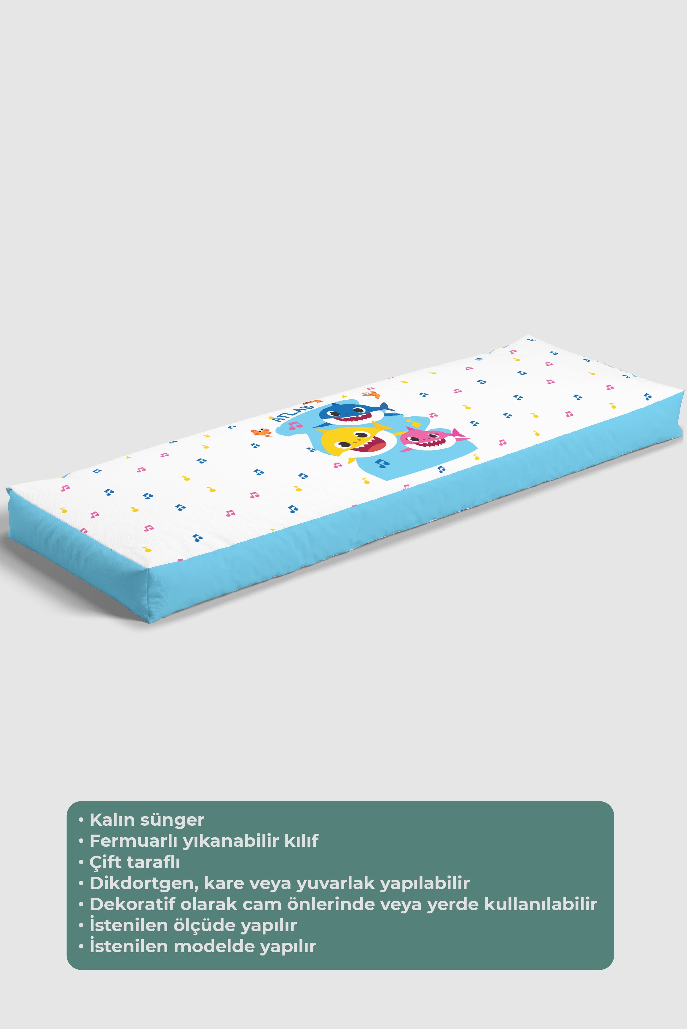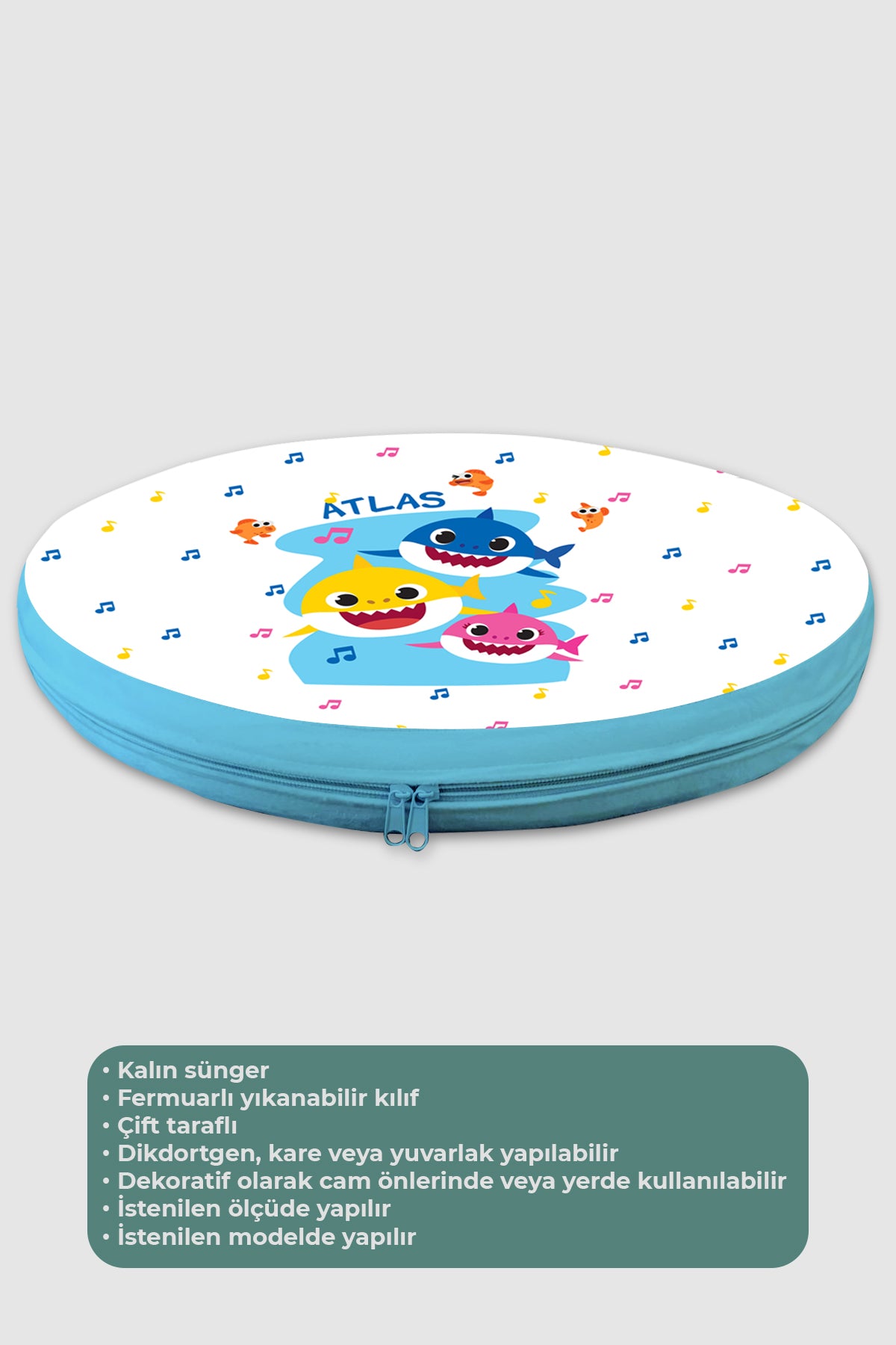 Beyaz, Baby Shark, Yer Minderi - 50*50 Kare Tekrar sipariş verilir ve stokta yoksa gönderilir