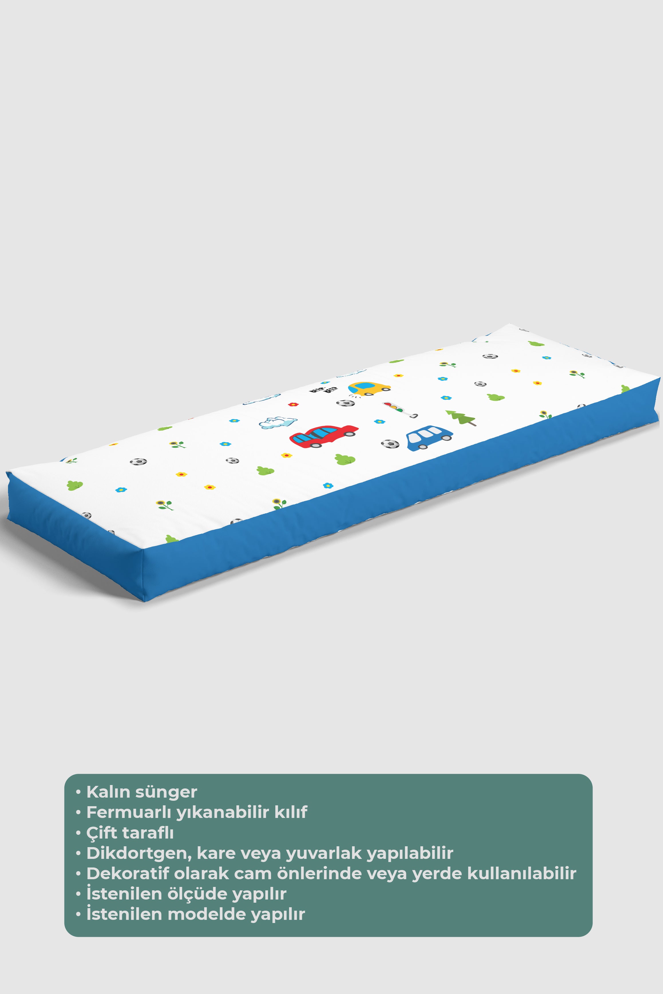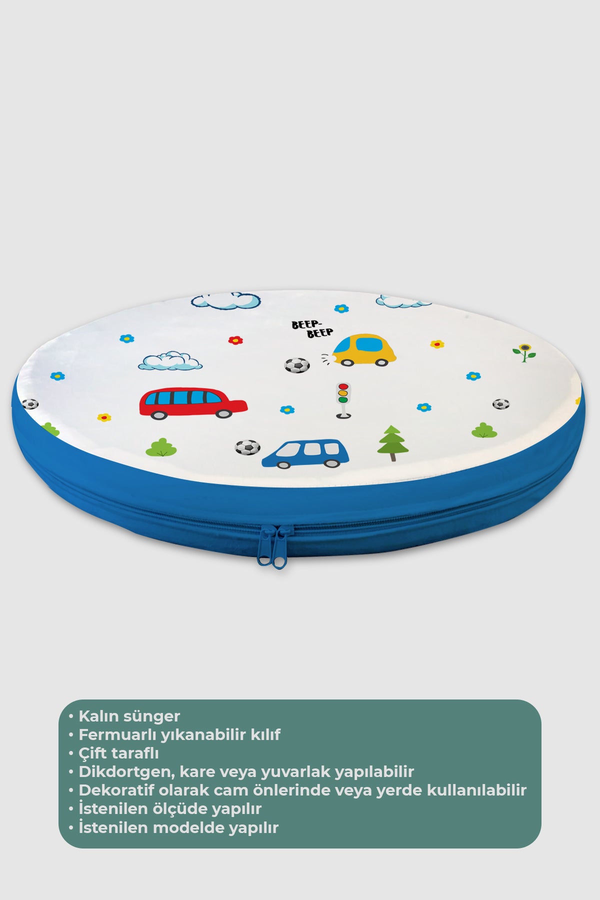 Beyaz, Canlı Renkli Arabalar, Yer Minderi - 50*50 Kare Tekrar sipariş verilir ve stokta yoksa gönderilir