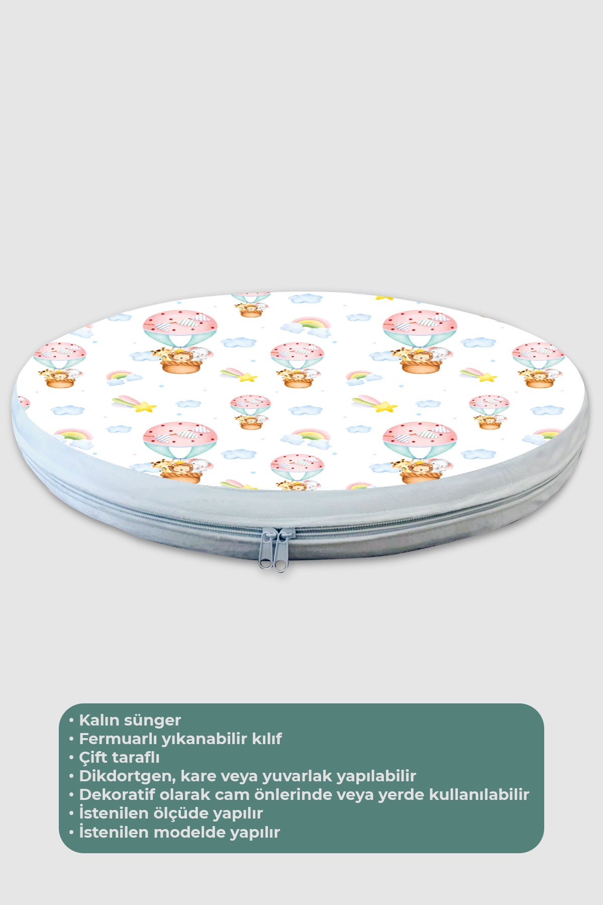 Renkli Balonlar ve Hayvanlar, Yer Minderi - 50*50 Kare Tekrar sipariş verilir ve stokta yoksa gönderilir