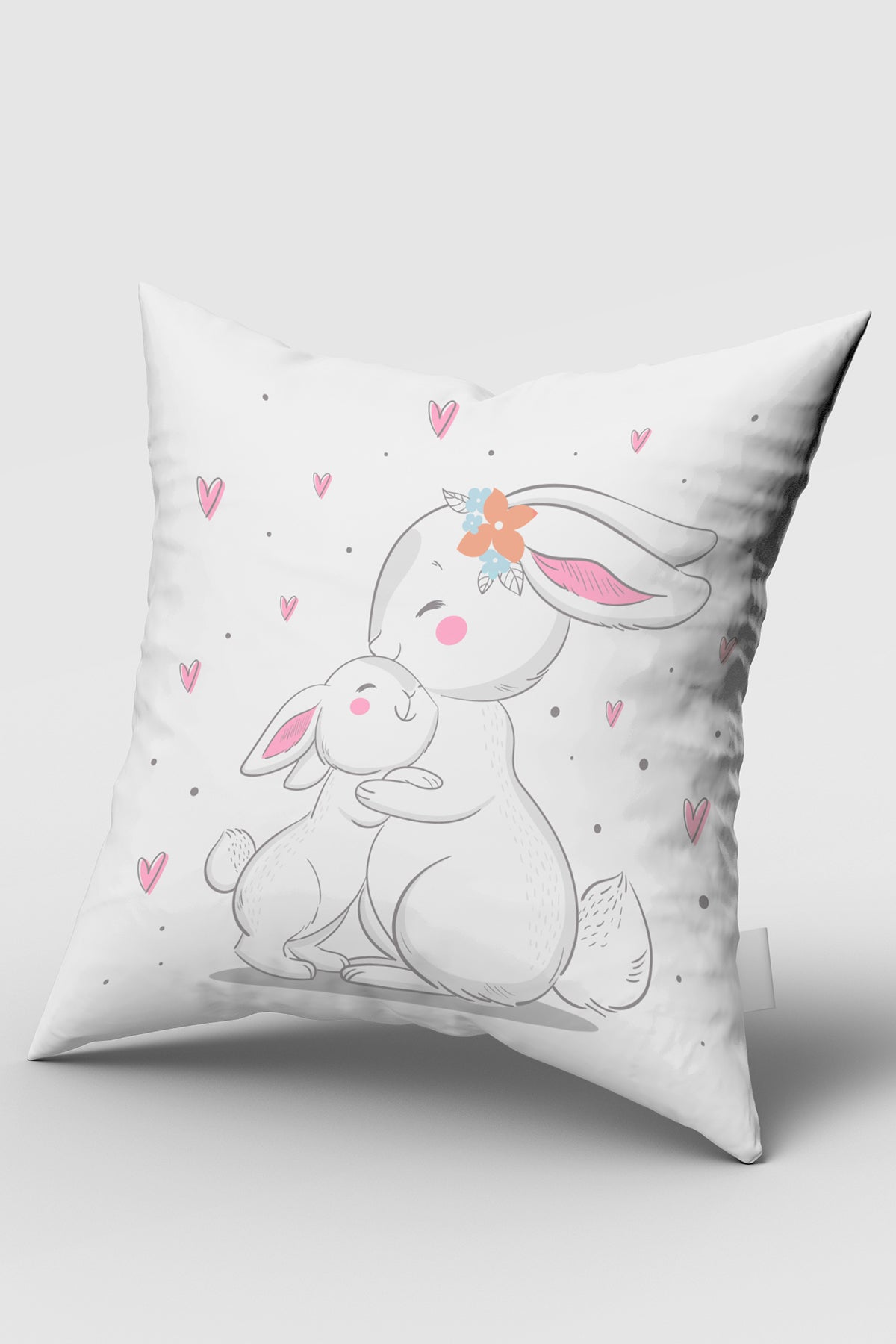Anne ve Yavru Tavşanı, Çift Taraflı, İthal Kadife Kumaş, Çocuk Bebek Odası Kırlent Kılıfı