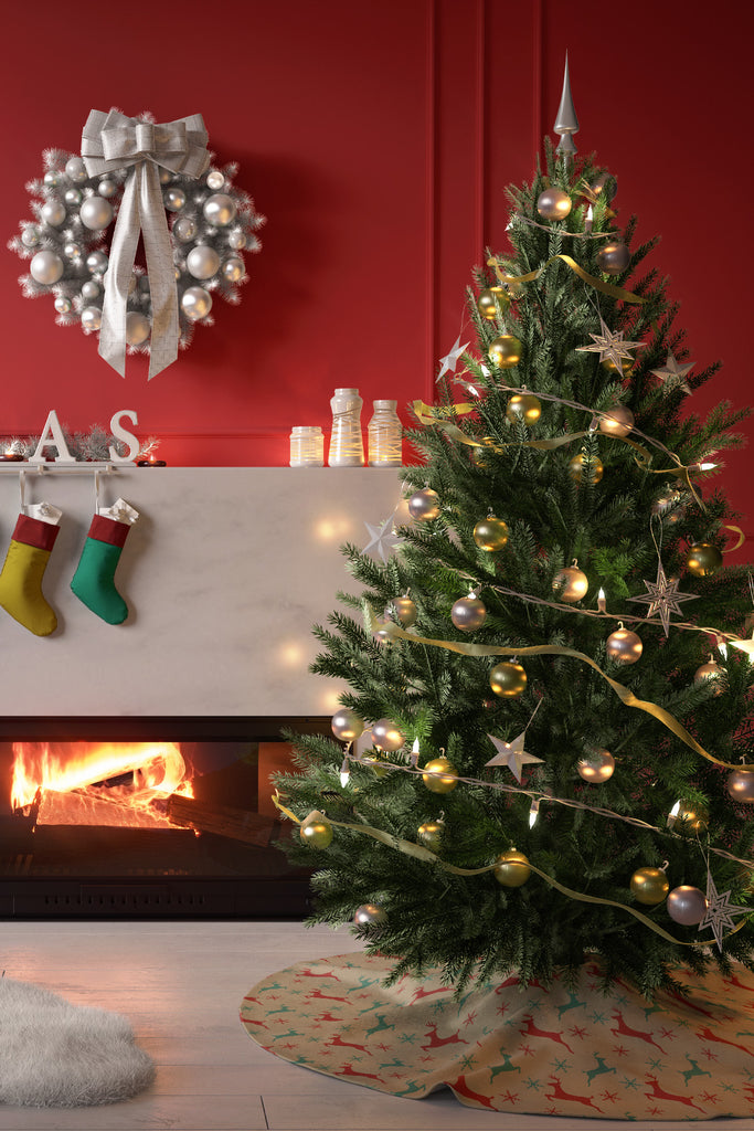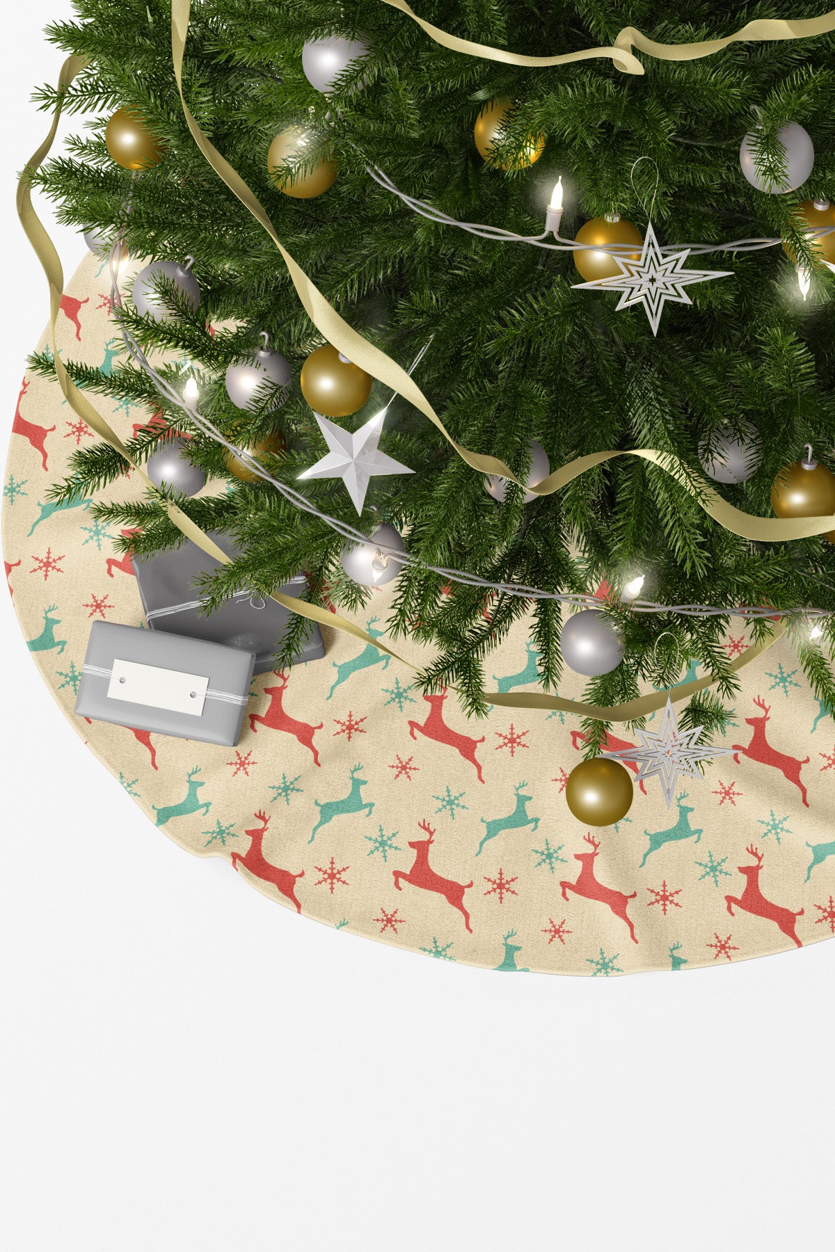 Kırmızı, Yeşil, Geyik, Yılbaşı Ağaç Örtüsü - 90*90 Tekrar sipariş verilir ve stokta yoksa gönderilir