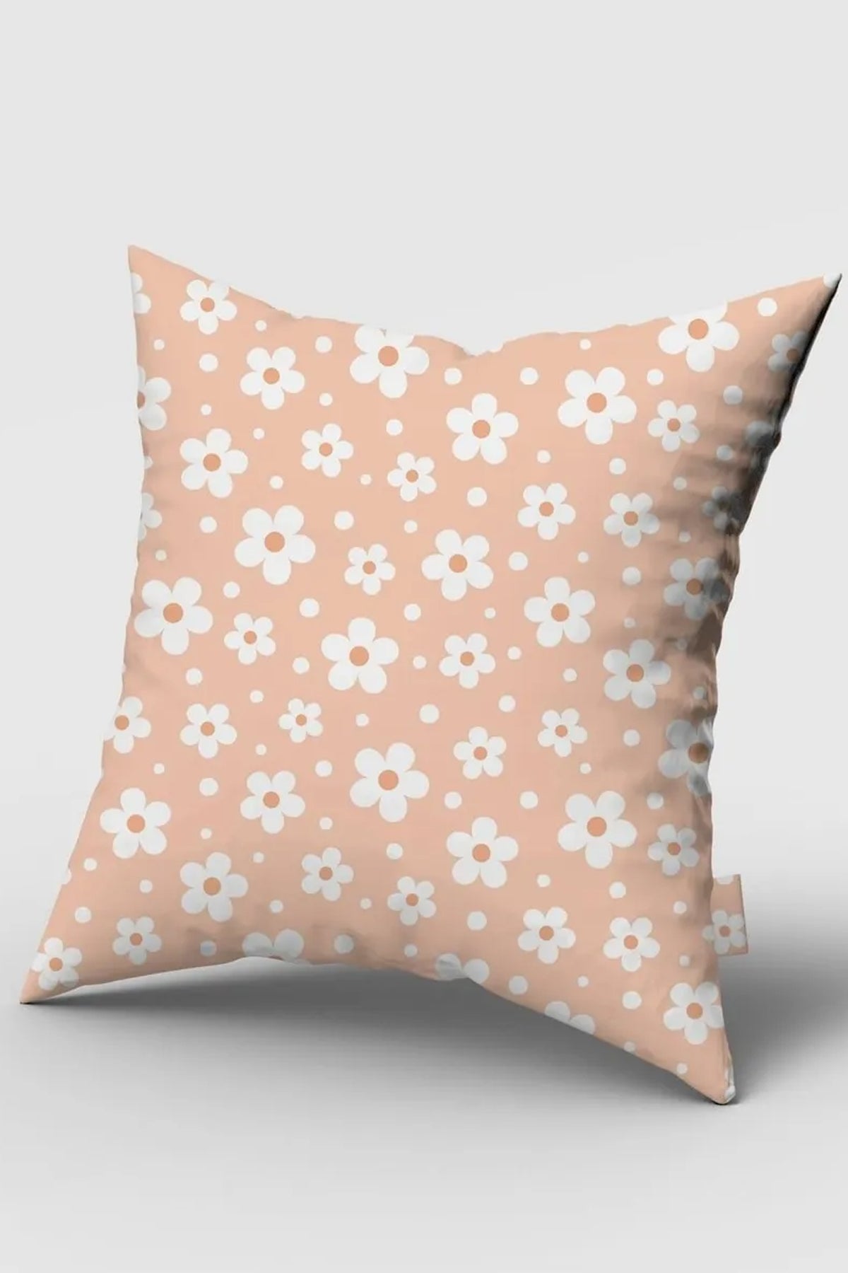 Açık Pembe Çiçekler, Çift Taraflı, İthal Kadife Kumaş, Çocuk Bebek Odası Kırlent Kılıfı