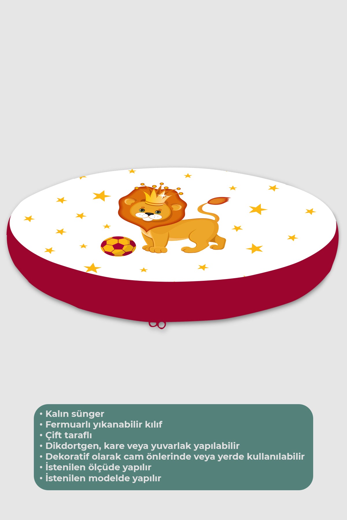Aslan, Sarı Kırmızı, Yer Minderi - 50*50 Kare Tekrar sipariş verilir ve stokta yoksa gönderilir