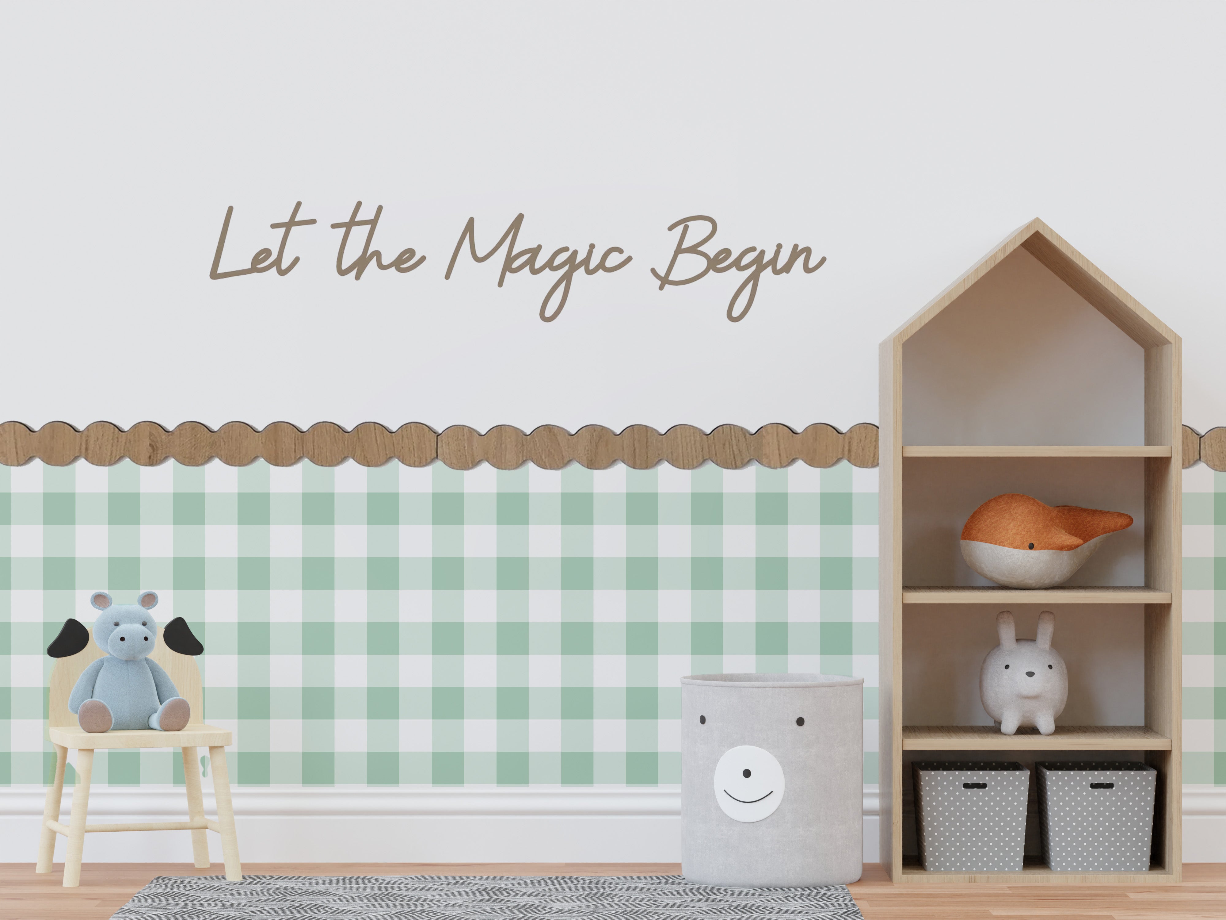 Çocuk odaları için özel tasarladığımız Let The Magic Begin duvar stickerı, sade duvarları bir anda canlı ve modern bir alana dönüştürüyor.