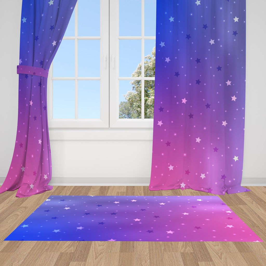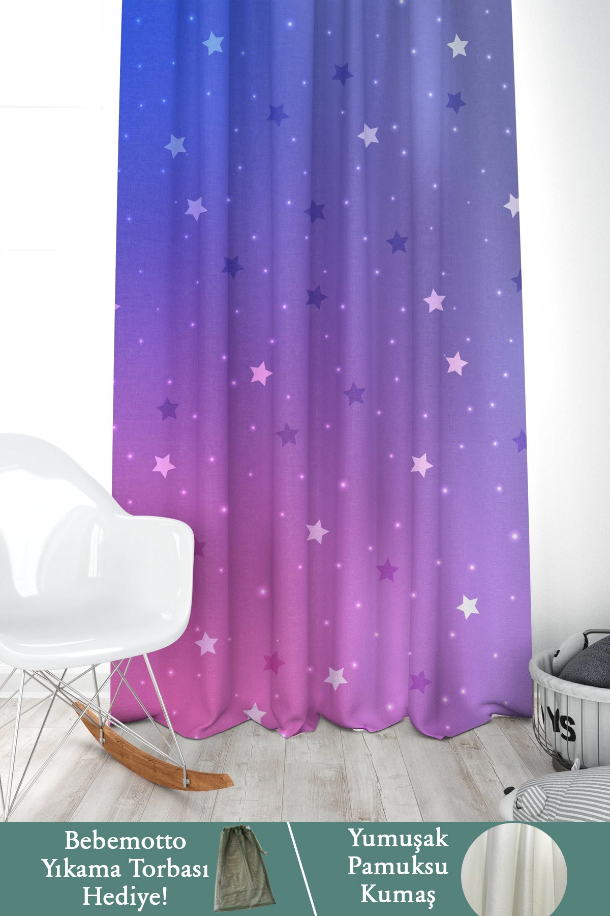 Mor Pembe Yıldızlar, İthal Kumaş, Çocuk ve Bebek Odası Fon Perde - 2 Kanat - 70*150 Tekrar sipariş verilir ve stokta yoksa gönderilir