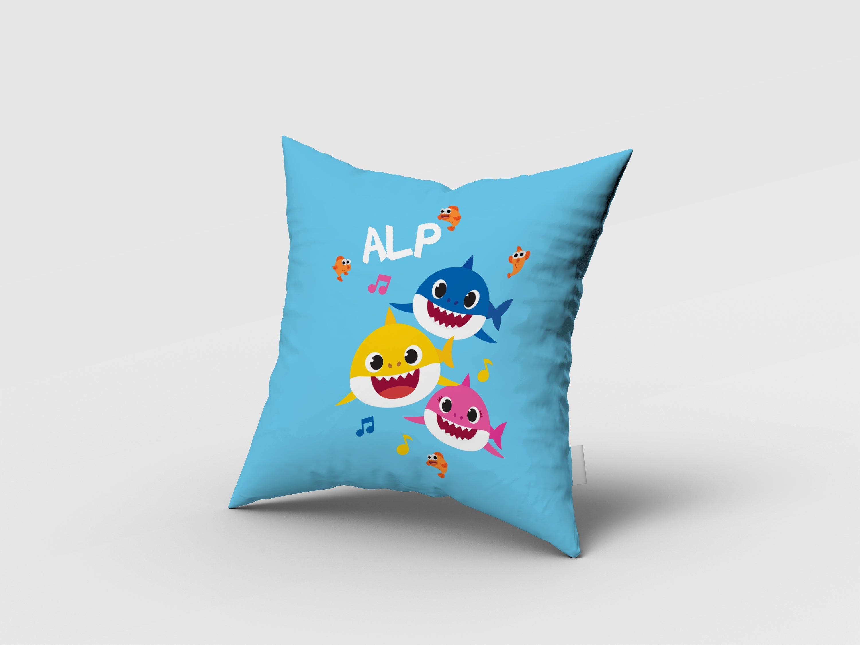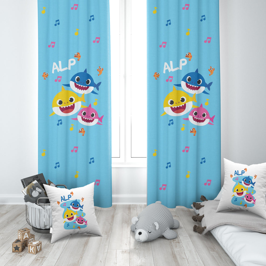 Mavi, Baby Shark, İthal Kumaş, Çocuk ve Bebek Odası Fon Perde - 2 Kanat - 70*150 Tekrar sipariş verilir ve stokta yoksa gönderilir