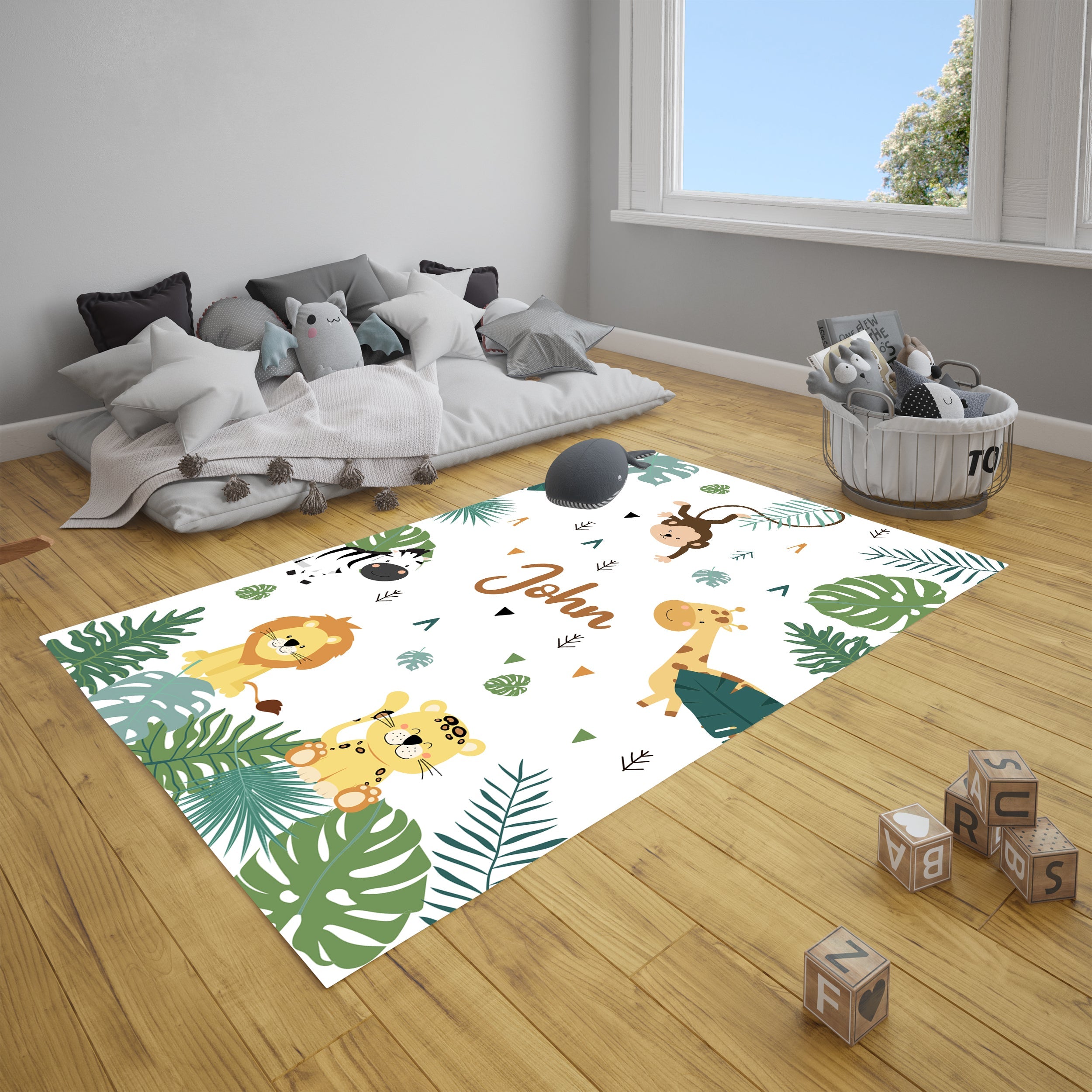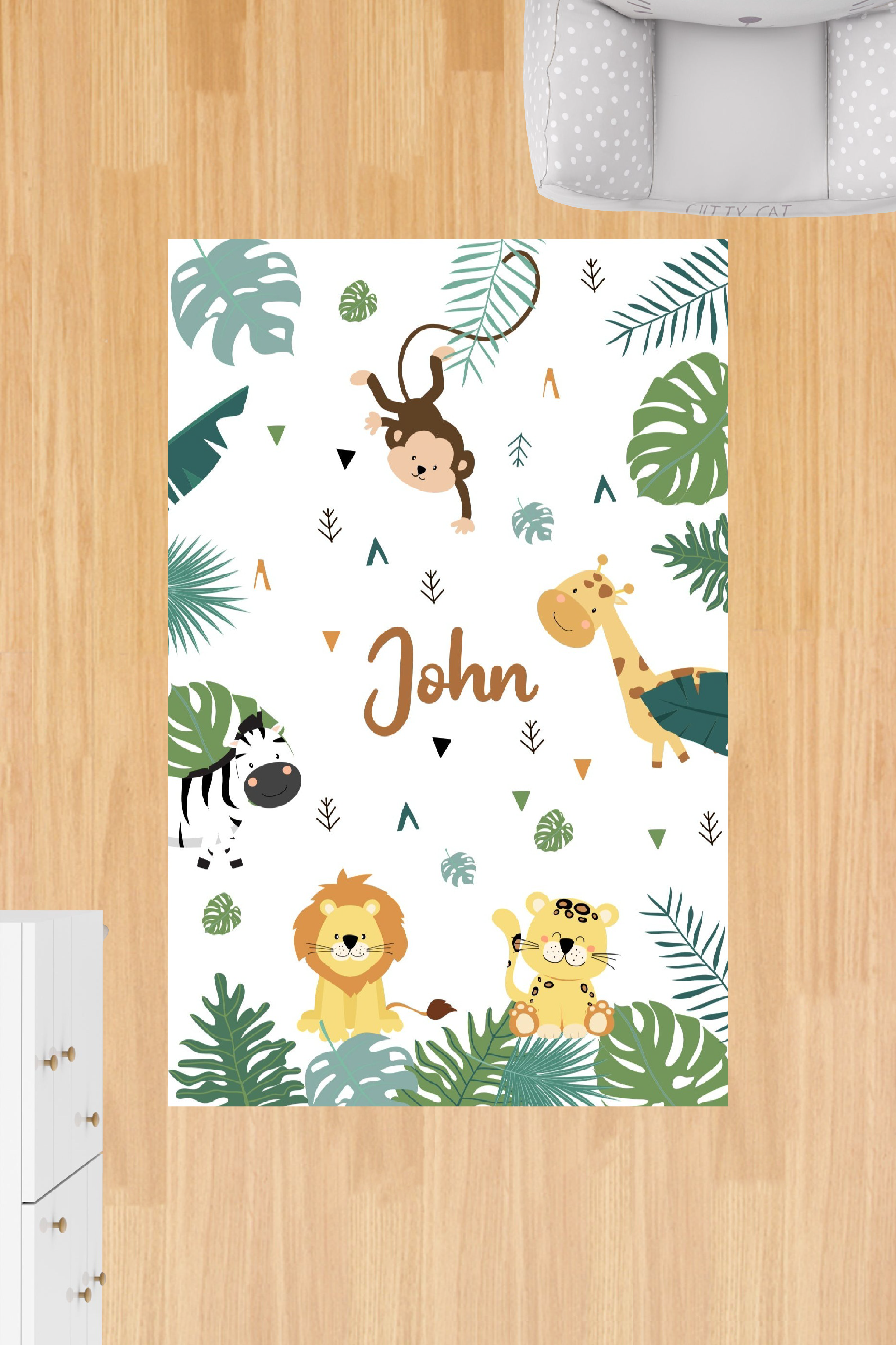 Aslan ve Arkadaşları, Kaymaz Tabanlı, Anti Alerjik, Bambu, Çocuk Odası Halısı