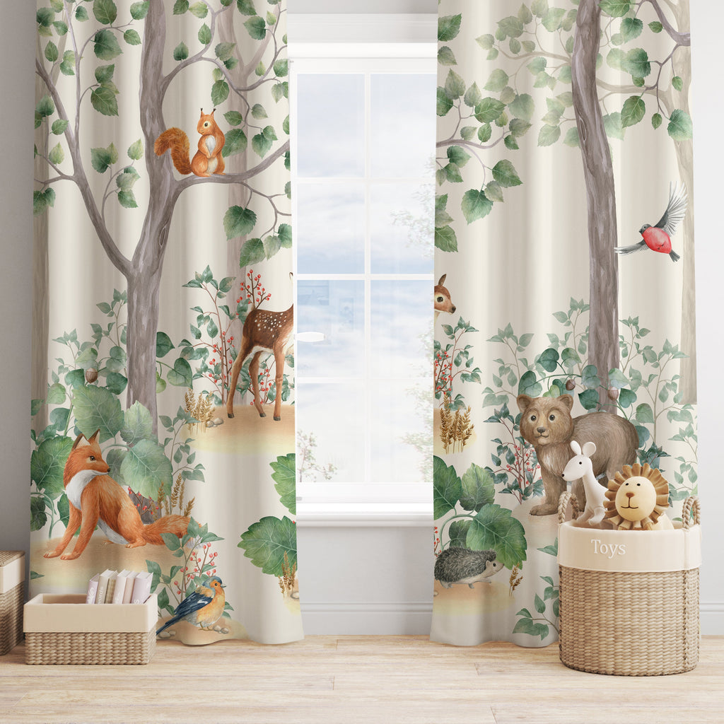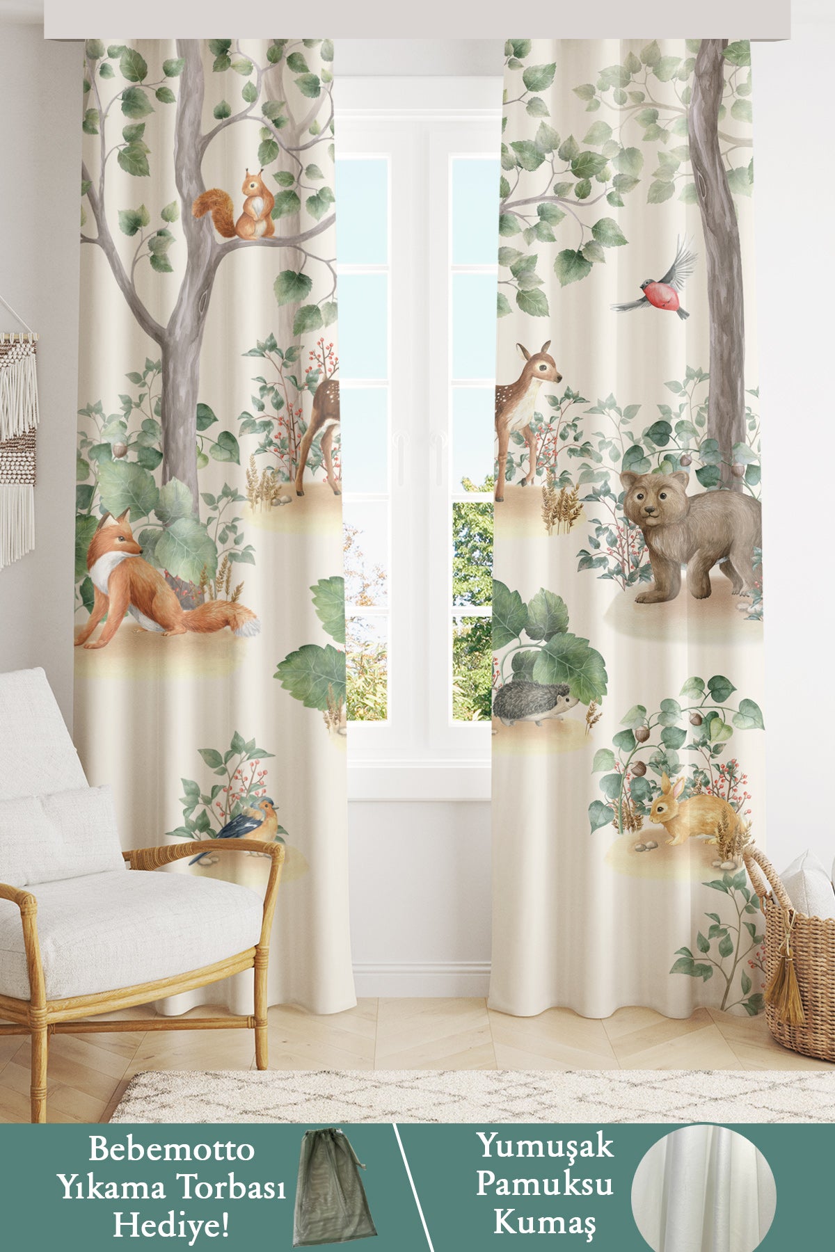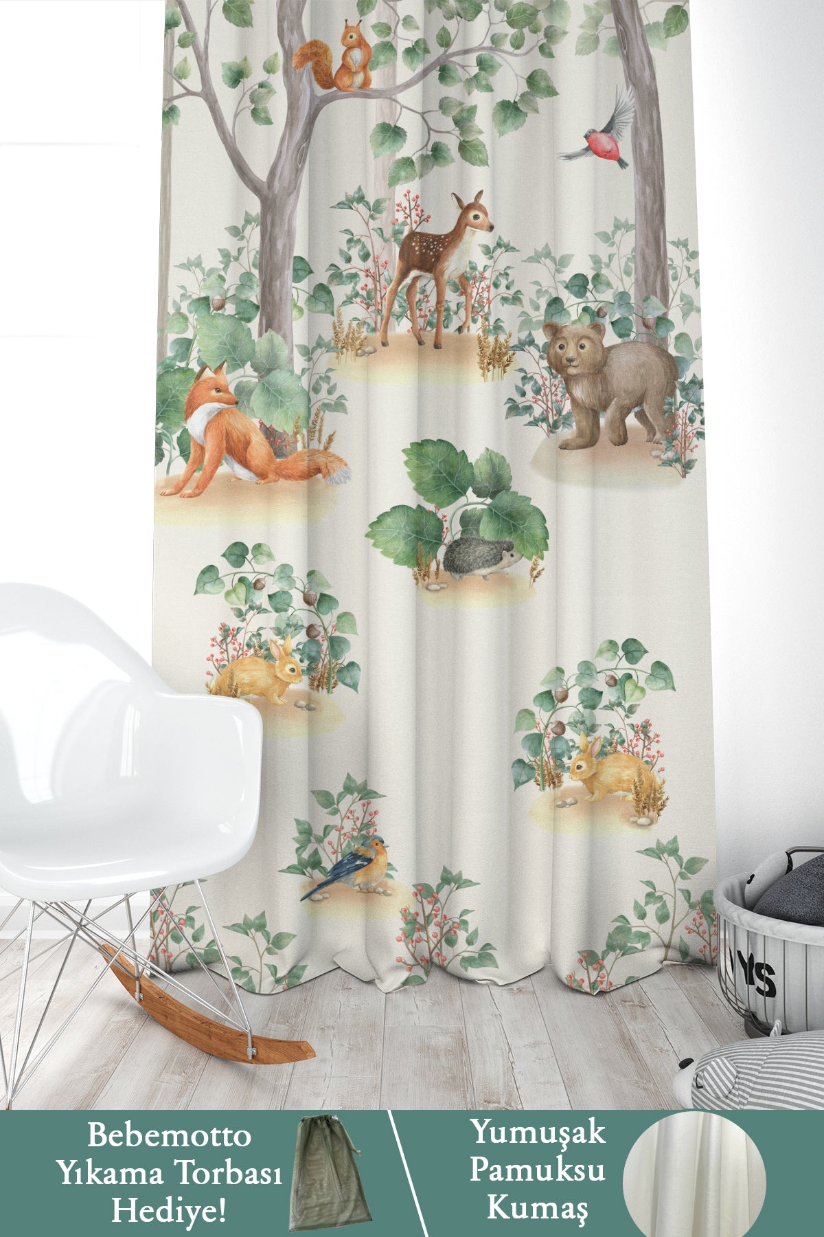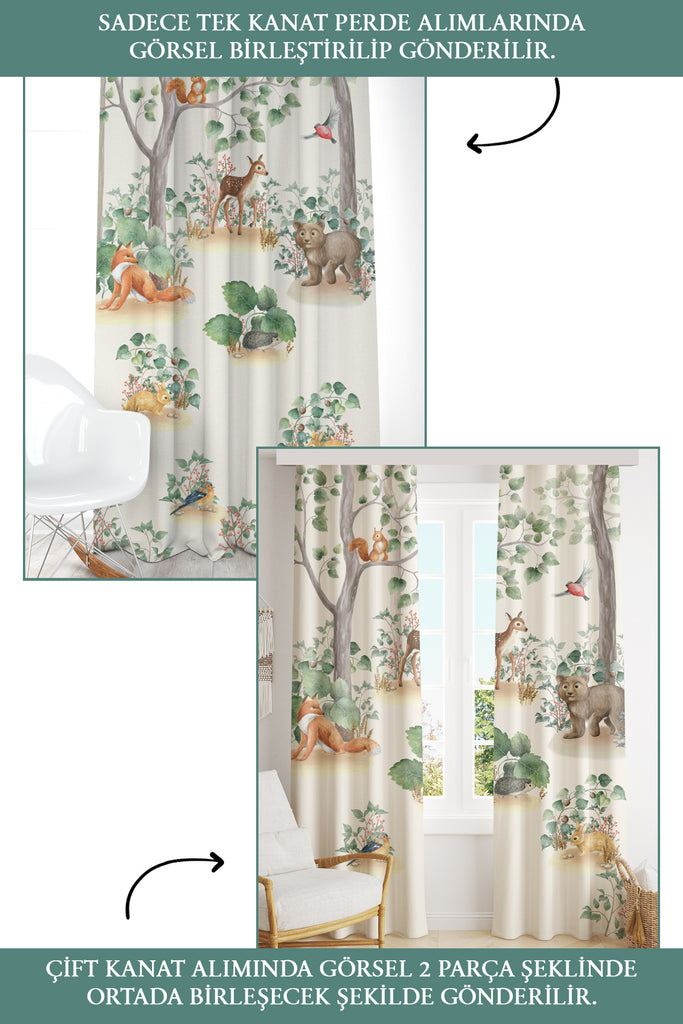 İskandinav Stili Orman Hayvanları, İthal Kumaş, Çocuk ve Bebek Odası Fon Perde - 2 Kanat - 70*150 Tekrar sipariş verilir ve stokta yoksa gönderilir