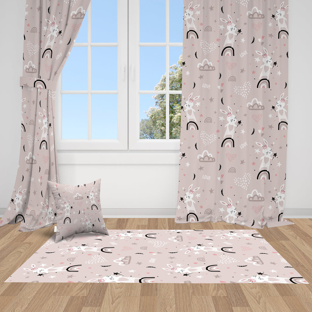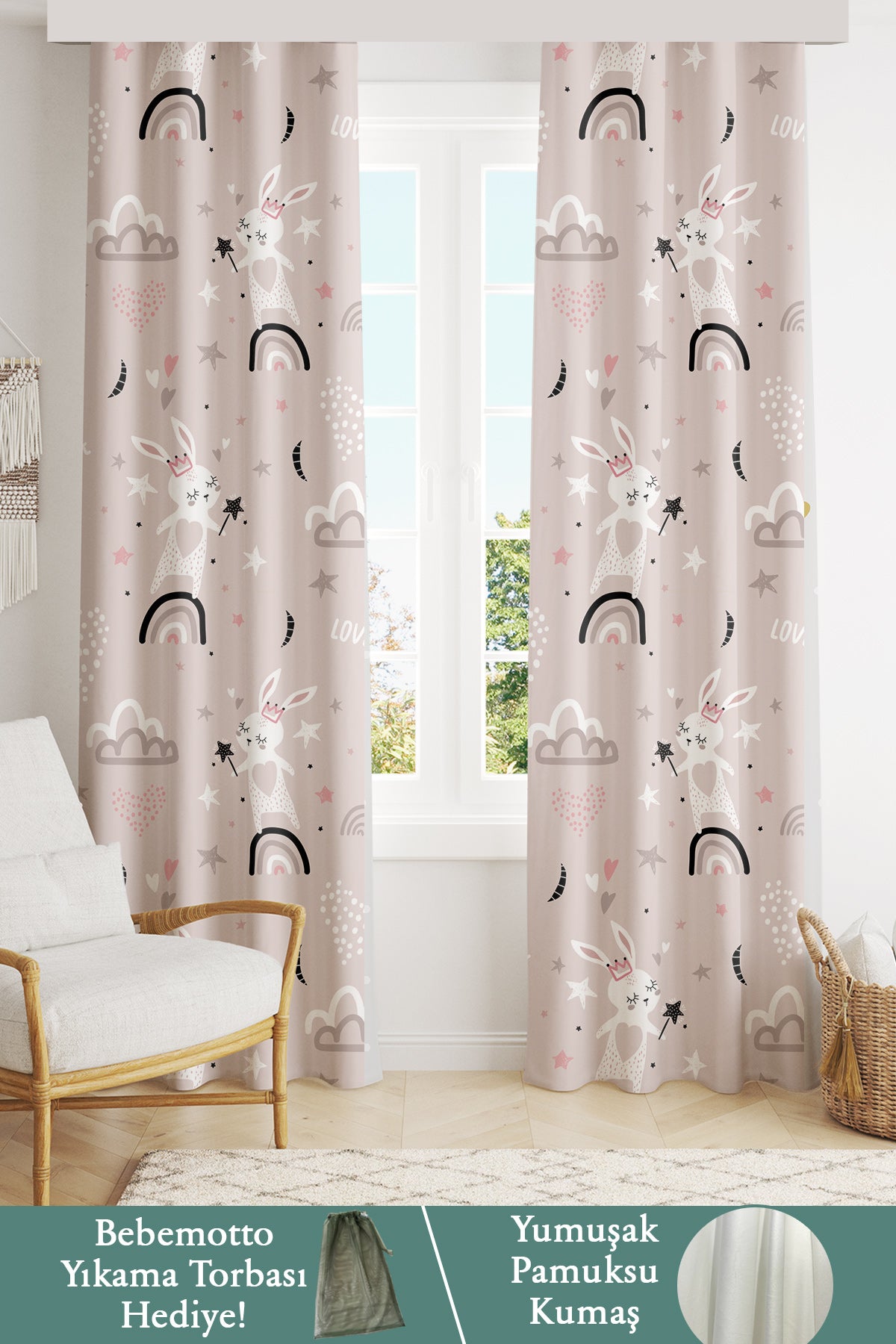 Sihirbaz Tavşan, İthal Kumaş, Çocuk ve Bebek Odası Fon Perde - 2 Kanat - 70*150 Tekrar sipariş verilir ve stokta yoksa gönderilir