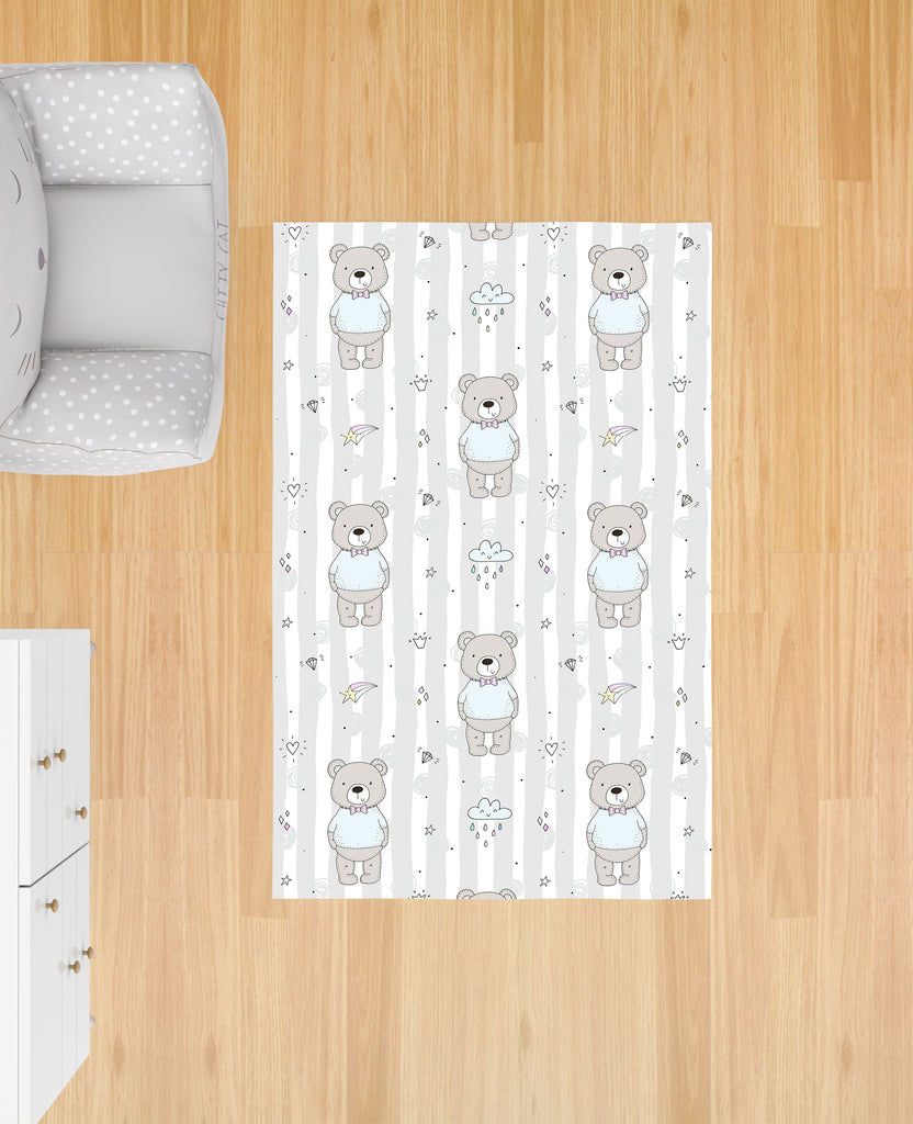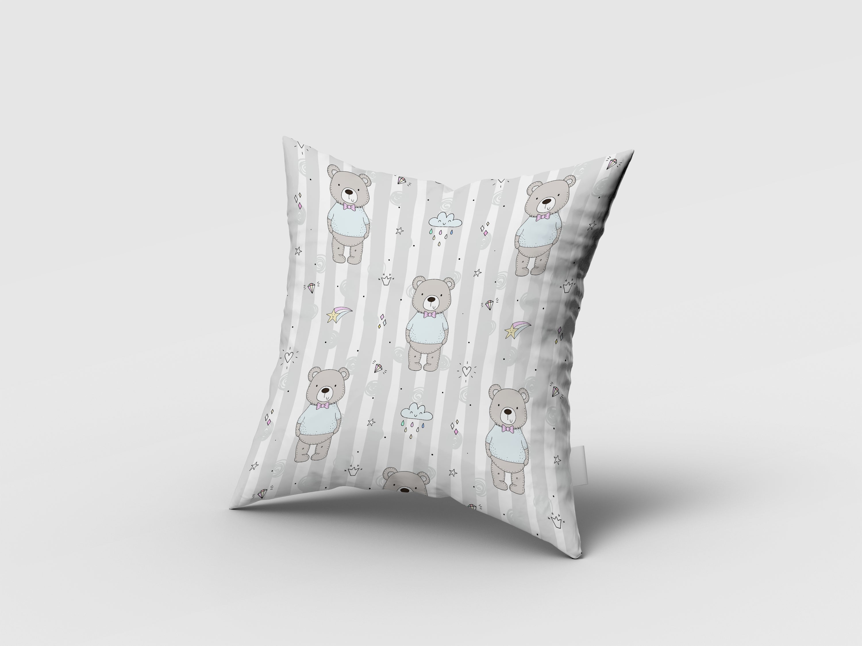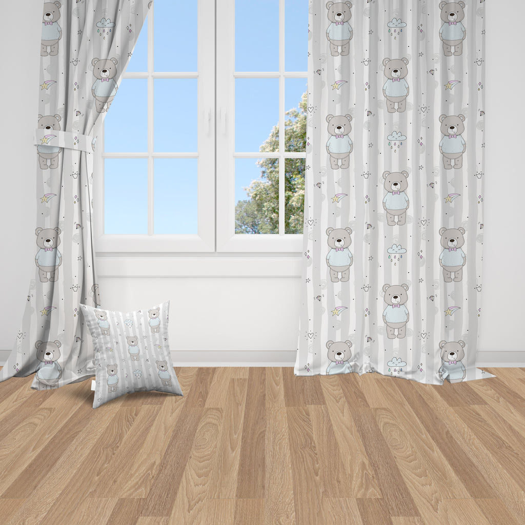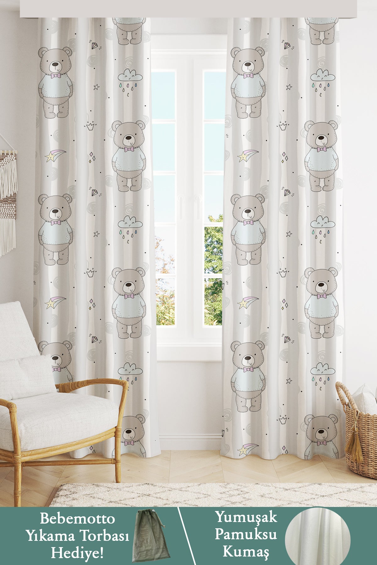 Soft Mavi, Ayıcık, İthal Kumaş, Çocuk ve Bebek Odası Fon Perde - 2 Kanat