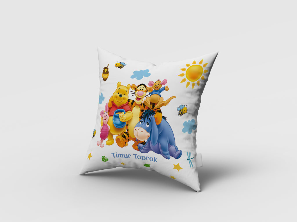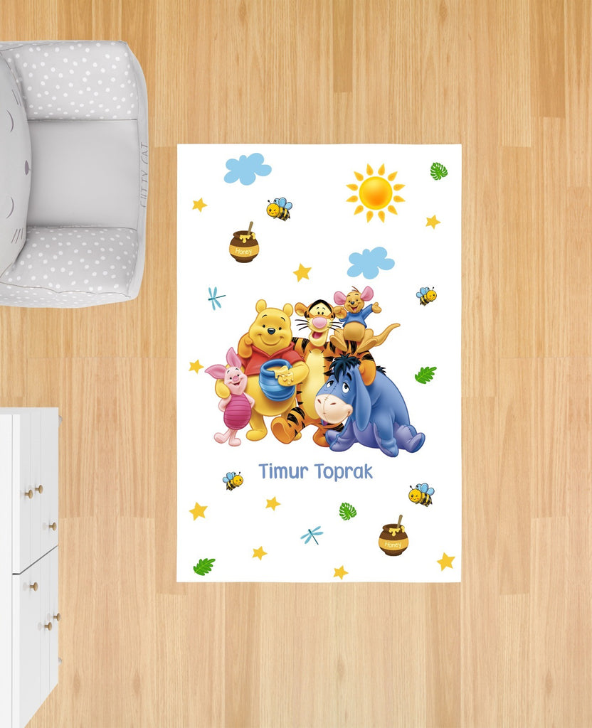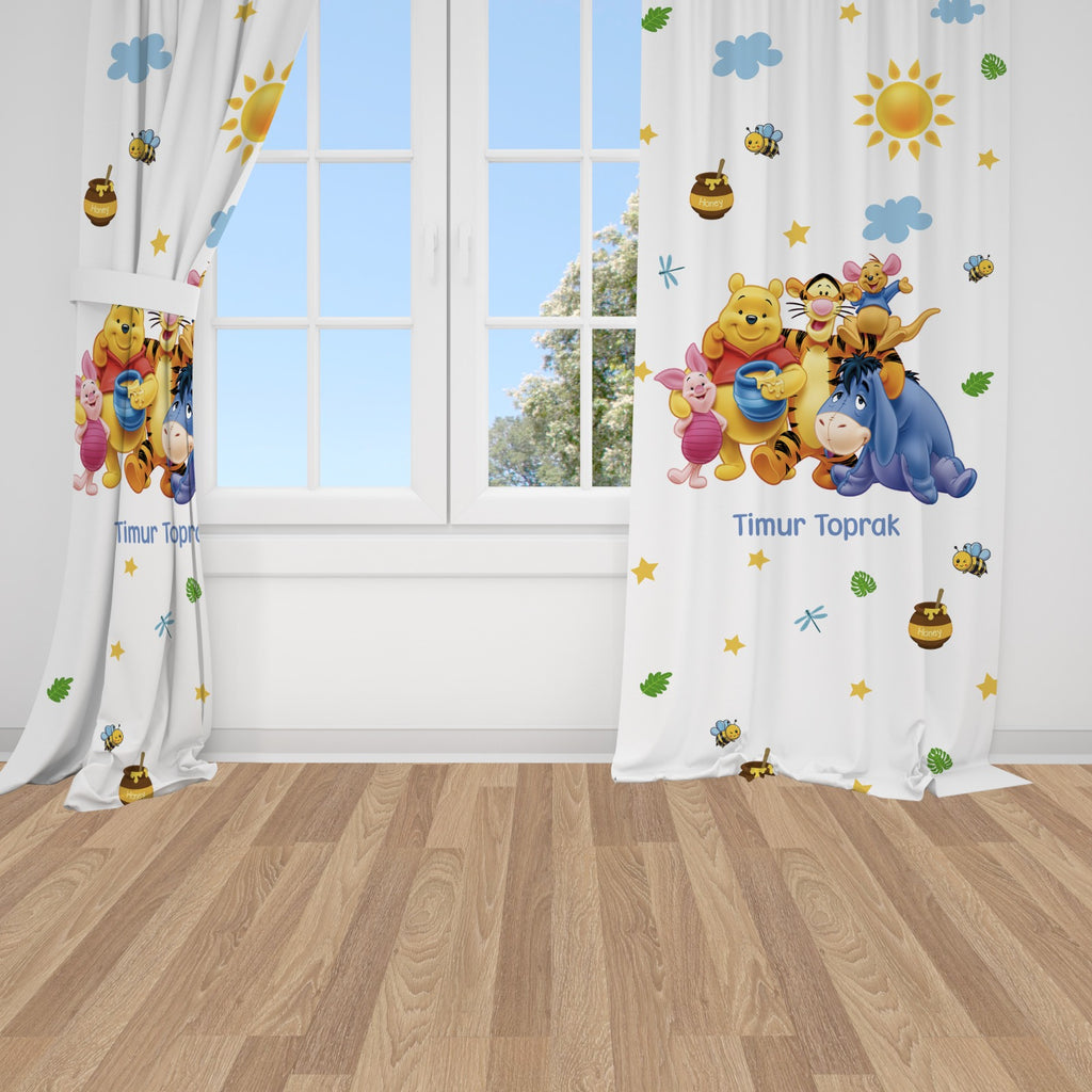 Winnie The Pooh, İthal Kumaş, Çocuk ve Bebek Odası Fon Perde - 2 Kanat