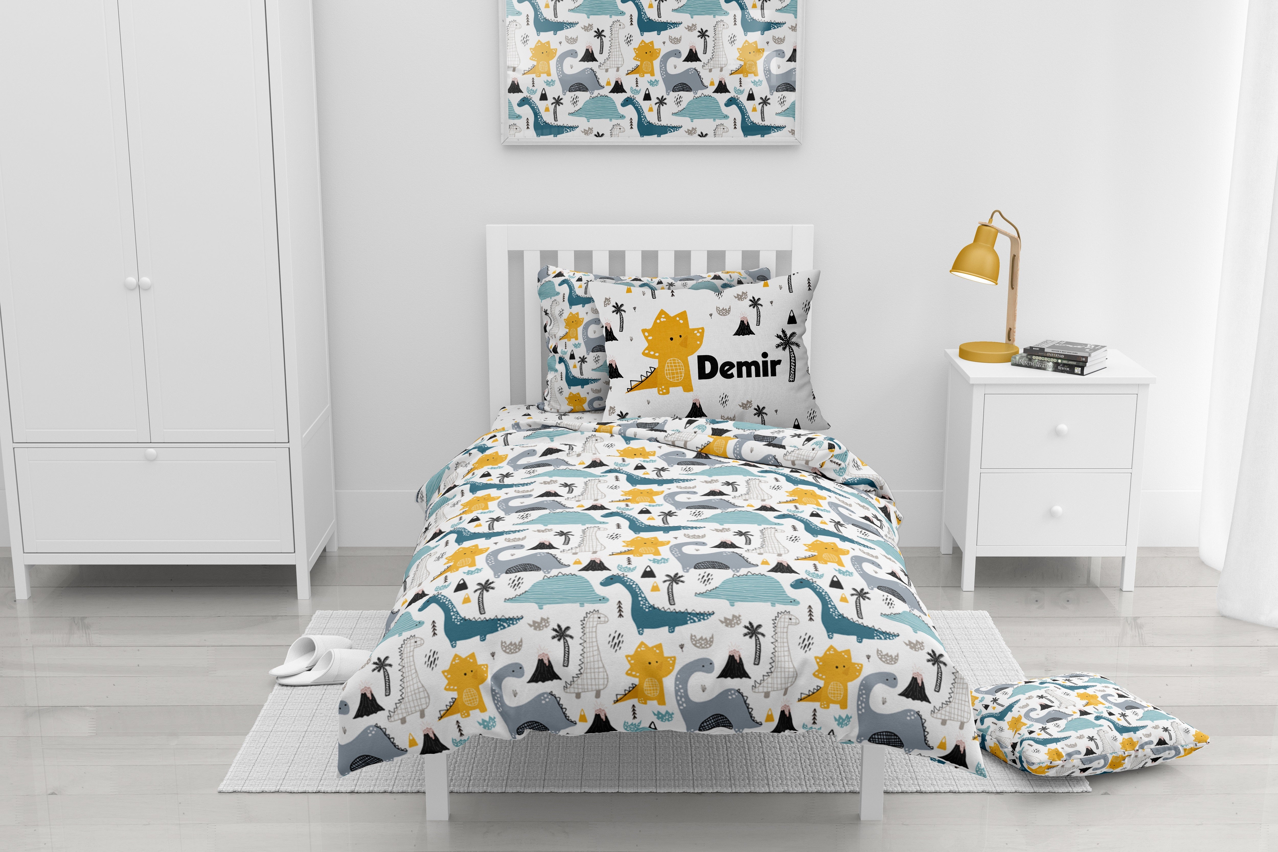 Sevimli Dinazorlar Renkli %100 Pamuk Bebek - Çocuk Nevresim Takımı