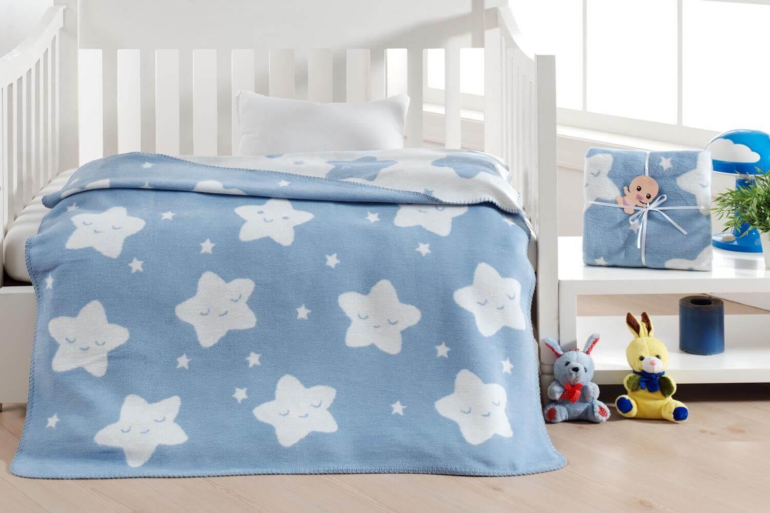 Dolce Bonita Home Pamuklu Çift Taraflı Bebek Battaniye 100x120 Star Açık Mavi