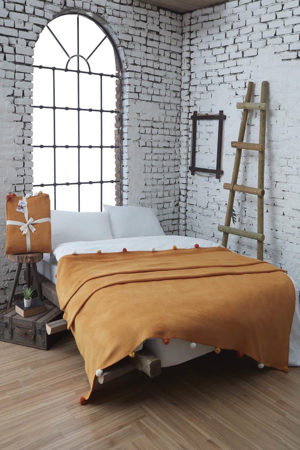 Dolce Bonita Home Tek Kişilik Ponponlu Pike Battaniye 150x200 Hardal