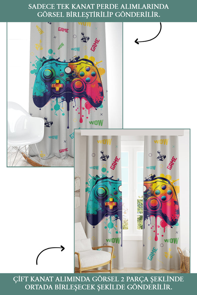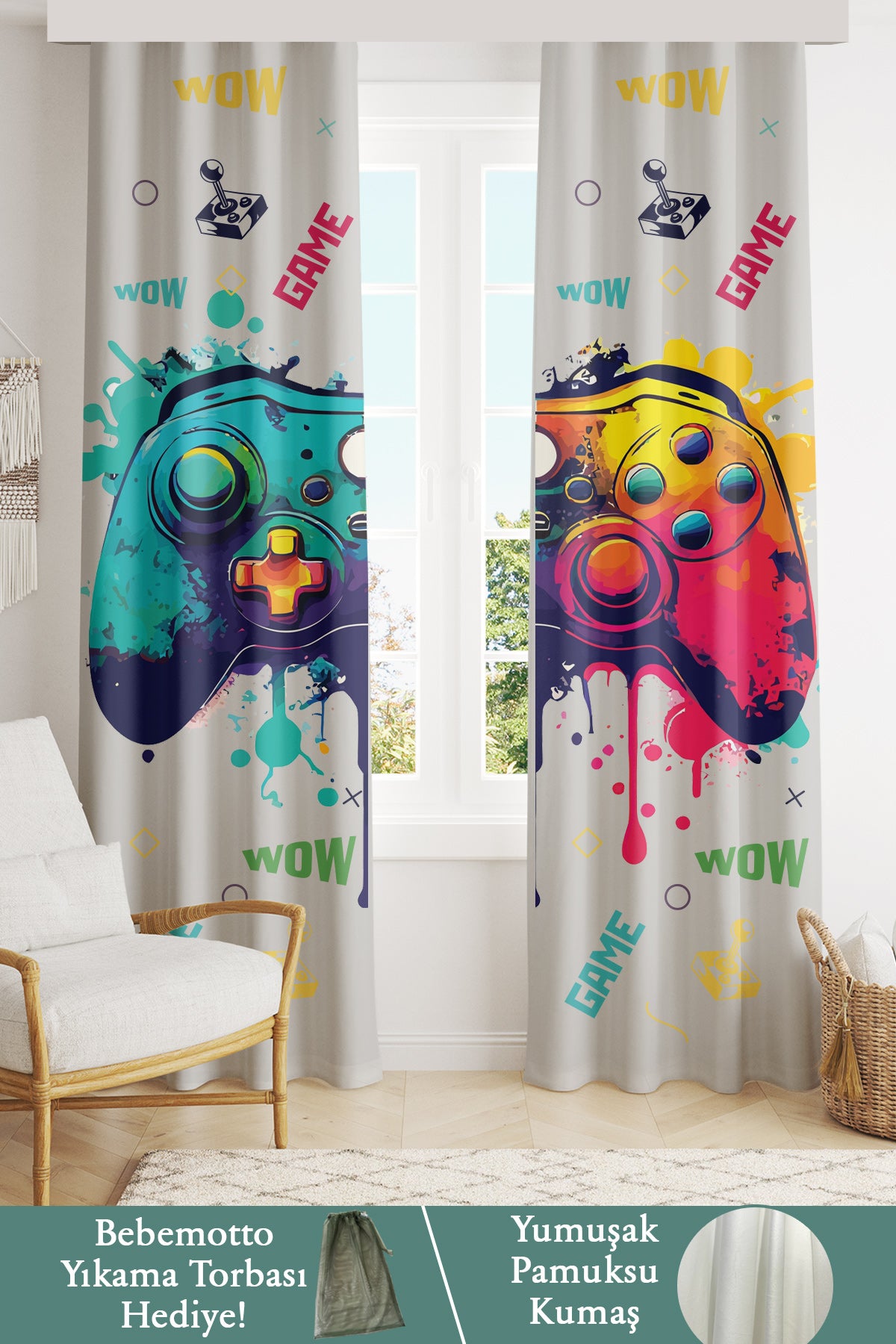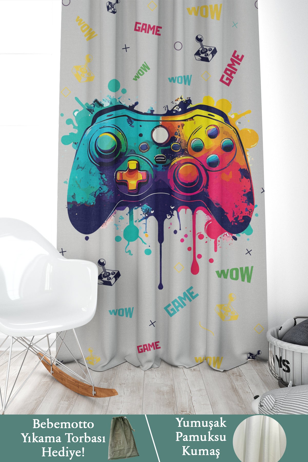 Joystick, Gri, İthal Kumaş, Çocuk ve Bebek Odası Fon Perde - 2 Kanat yeni - 70*150 Tekrar sipariş verilir ve stokta yoksa gönderilir