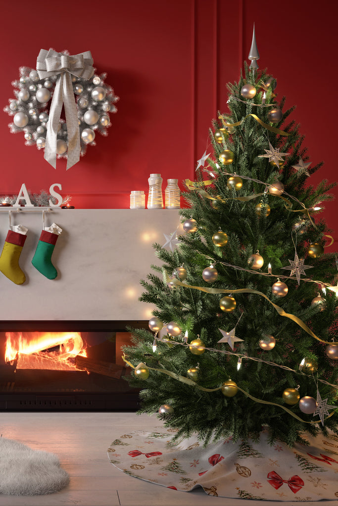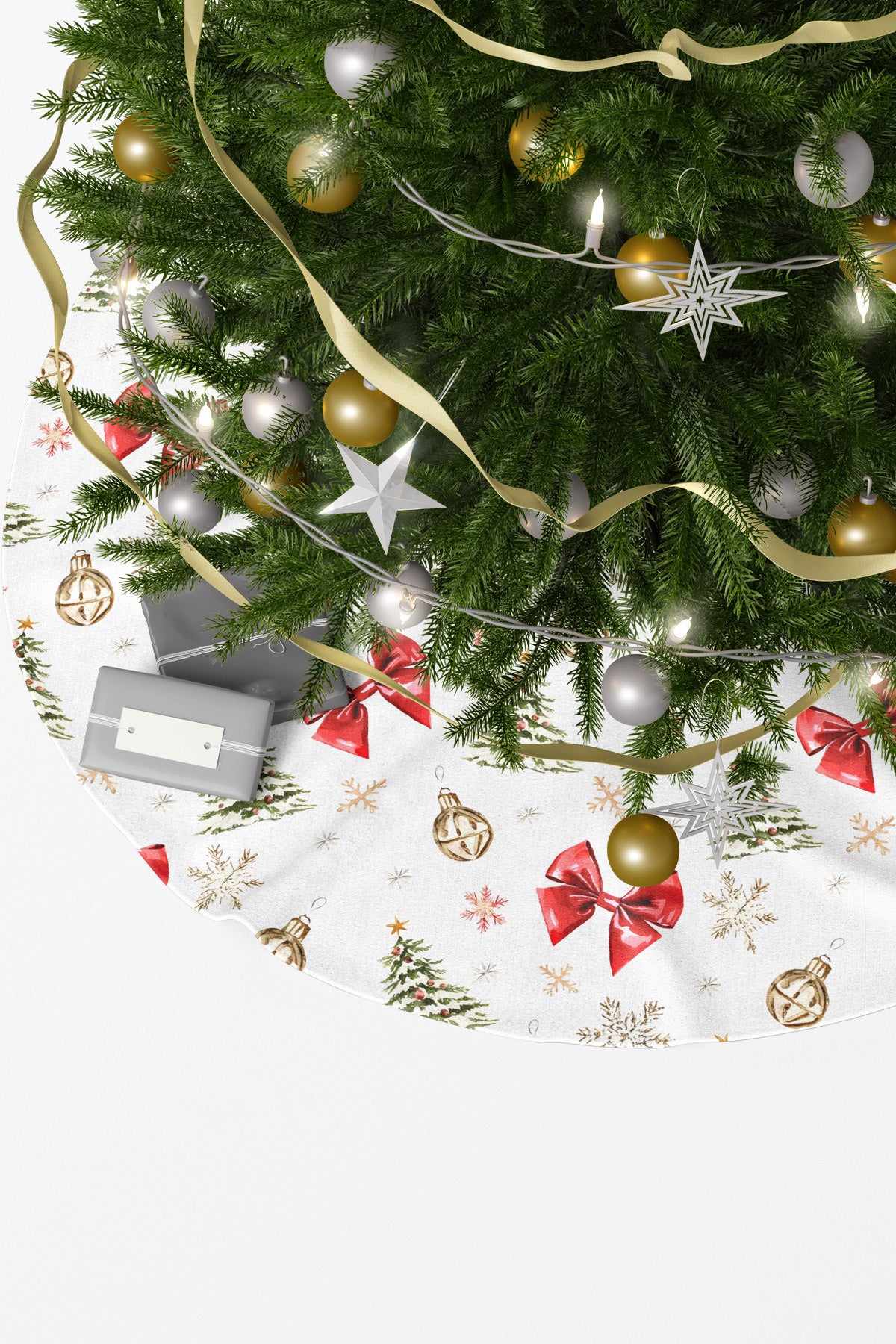 Kırmızı Kurdele ve Çam Ağacı, Yılbaşı Ağaç Örtüsü - 90*90 Tekrar sipariş verilir ve stokta yoksa gönderilir