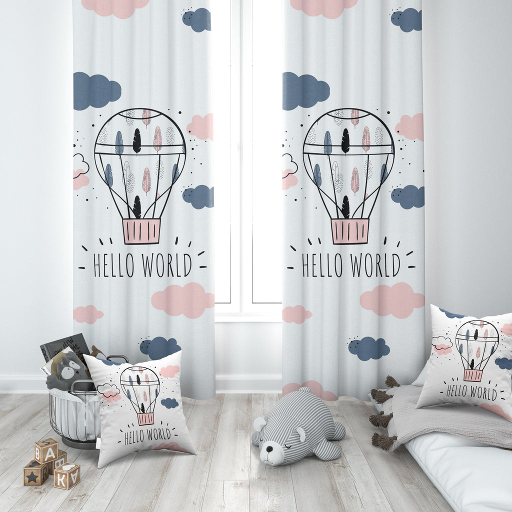 Merhaba Dünya, İthal Kumaş, Çocuk ve Bebek Odası Fon Perde - 2 Kanat - 70*150 Tekrar sipariş verilir ve stokta yoksa gönderilir