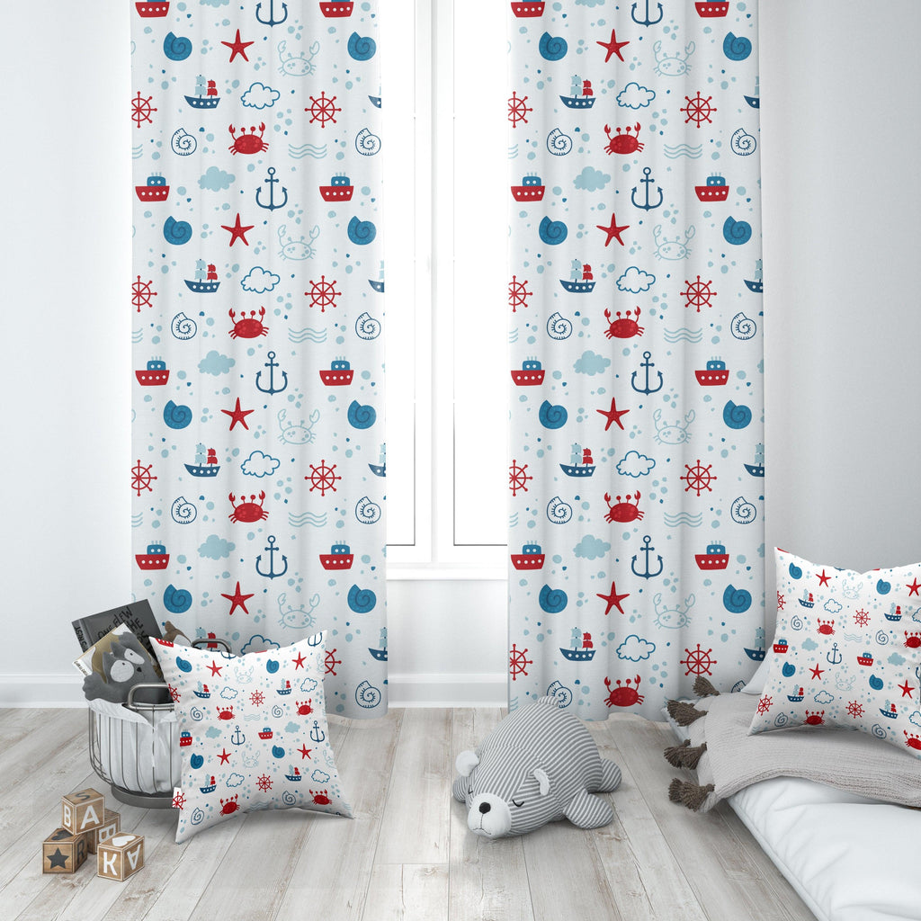 Okyanus, Deniz Altı Dünyası, İthal Kumaş, Çocuk ve Bebek Odası Fon Perde - 2 Kanat
