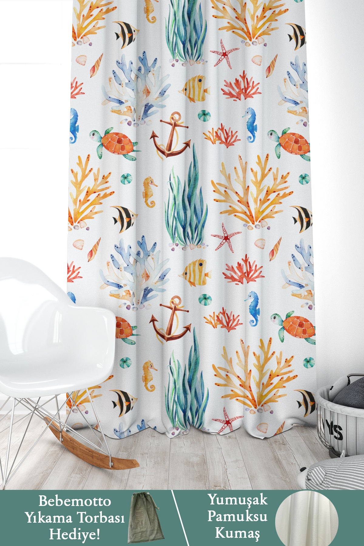 Okyanus, Deniz Altı Dünyası, İthal Kumaş, Çocuk ve Bebek Odası Fon Perde - 2 Kanat - 70*150 Tekrar sipariş verilir ve stokta yoksa gönderilir