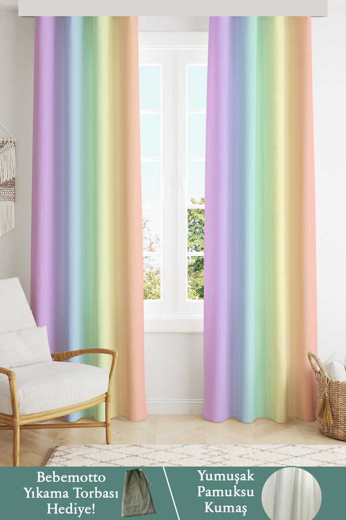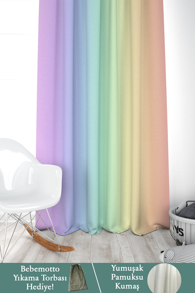 Ombre, İthal Kumaş, Çocuk ve Bebek Odası Fon Perde - 2 Kanat - 70*150 Tekrar sipariş verilir ve stokta yoksa gönderilir