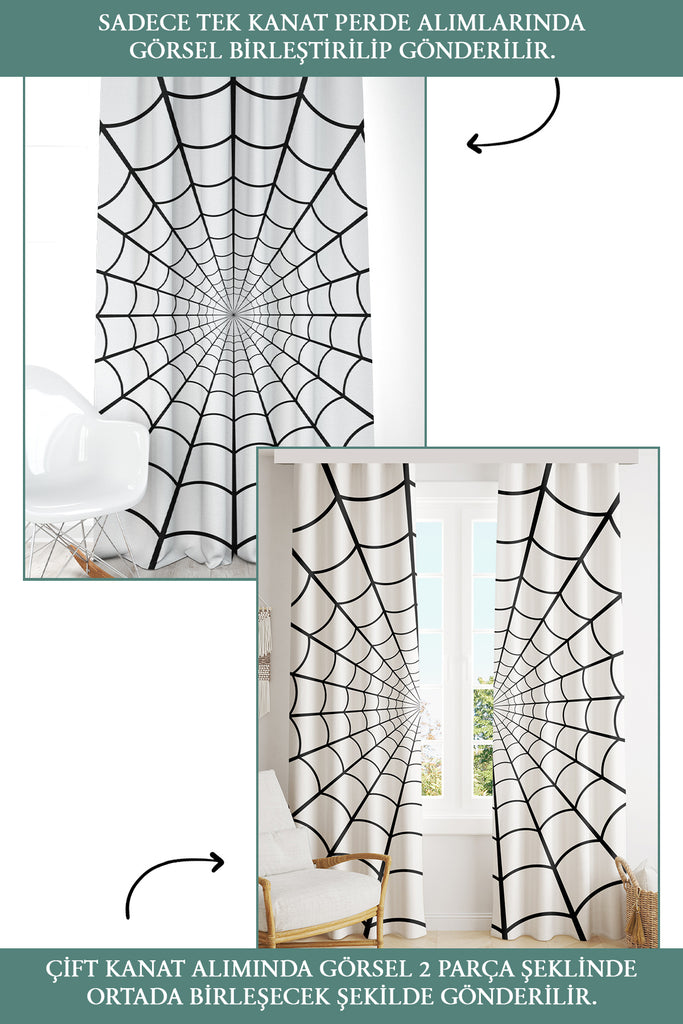 Örümcek Ağı, İthal Kumaş, Çocuk ve Bebek Odası Fon Perde - 2 Kanat