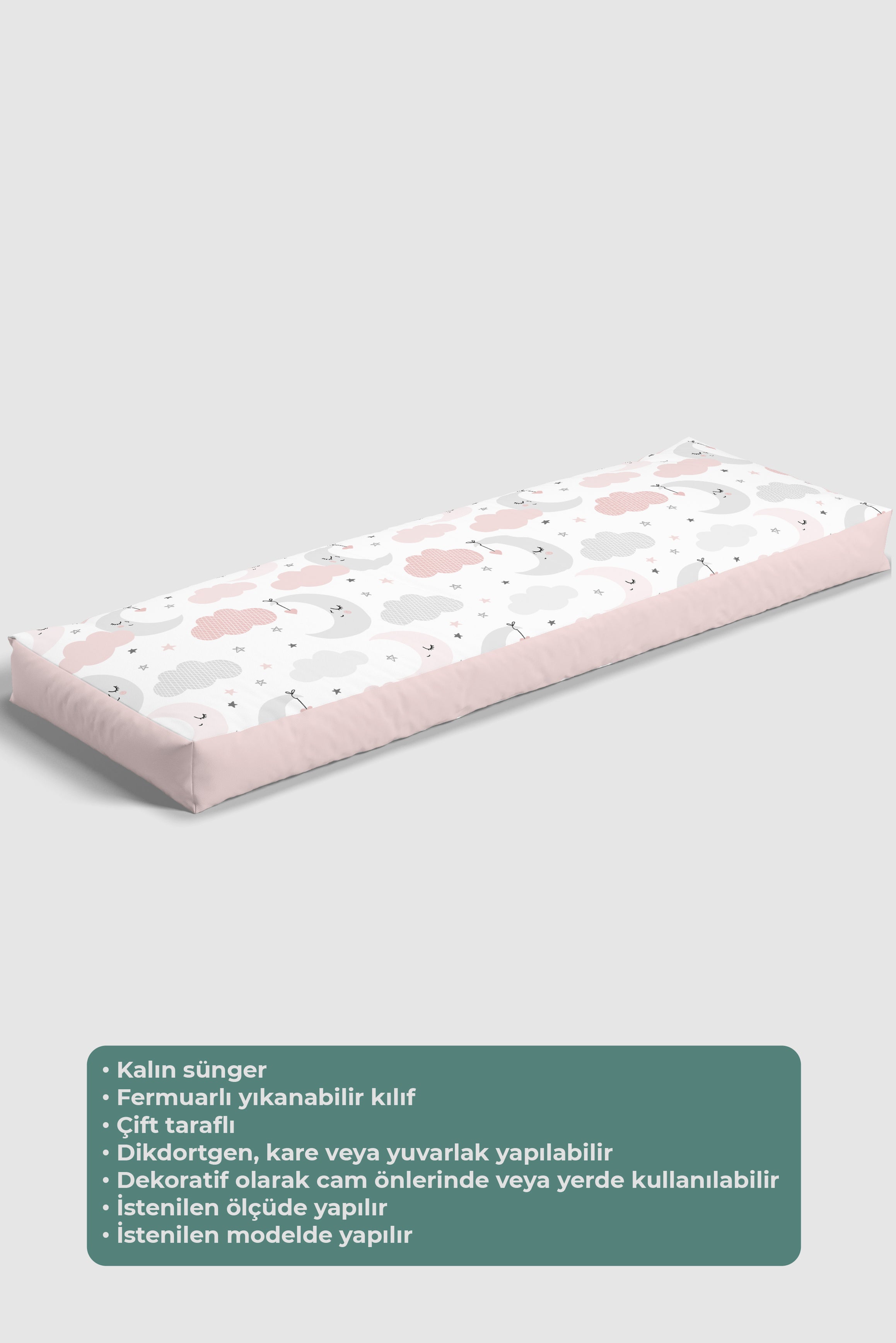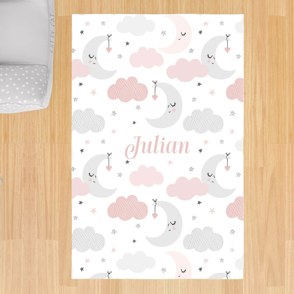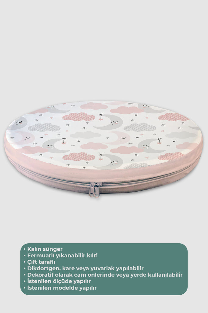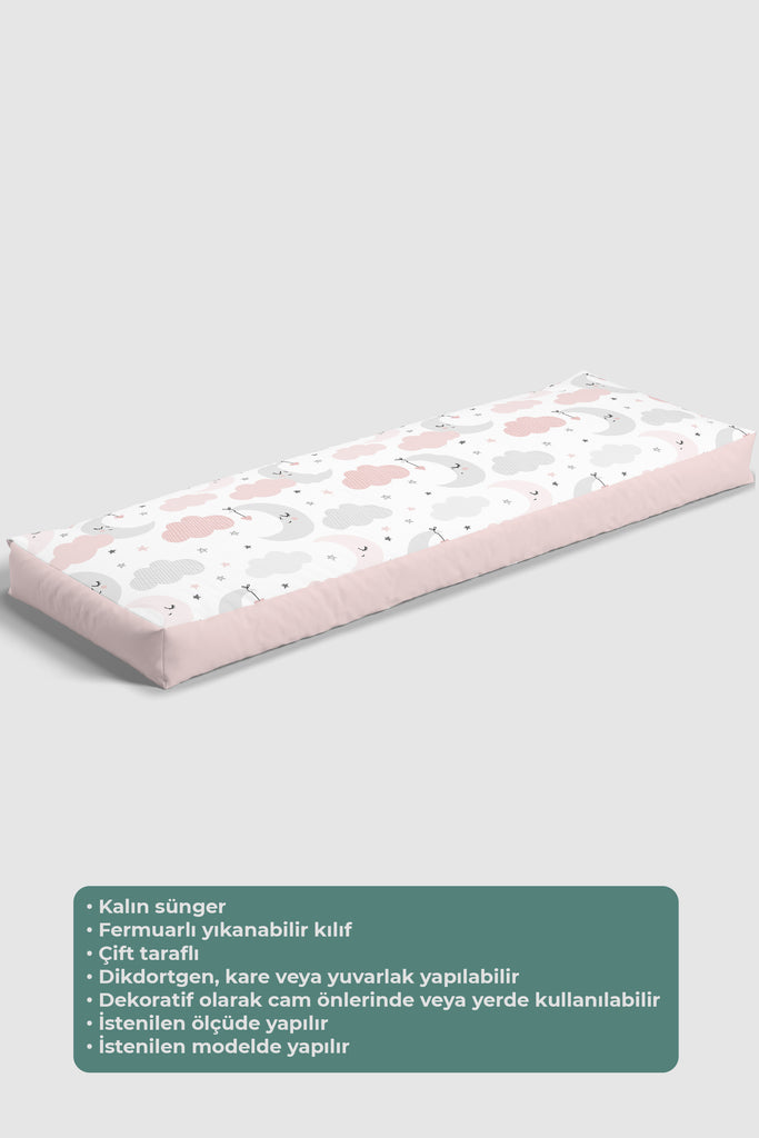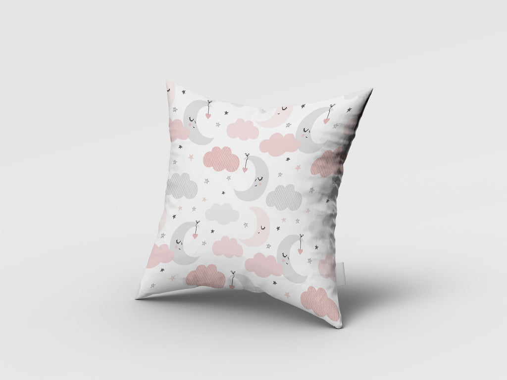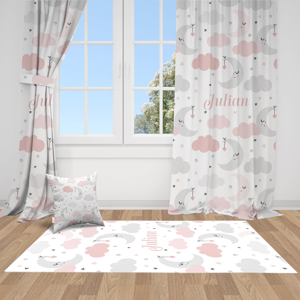 Pembe Ay ve Bulutlar, İthal Kumaş, Çocuk ve Bebek Odası Fon Perde - 2 Kanat - 70*150 Tekrar sipariş verilir ve stokta yoksa gönderilir