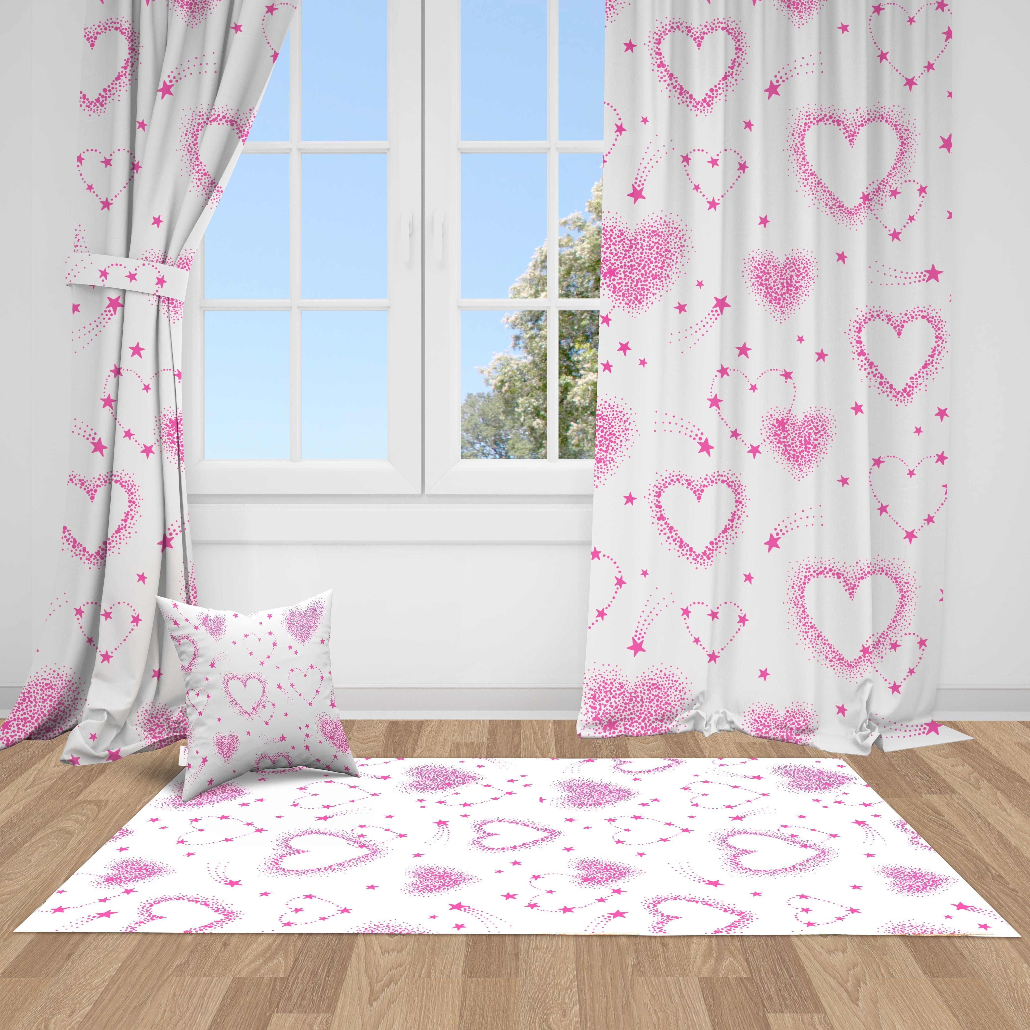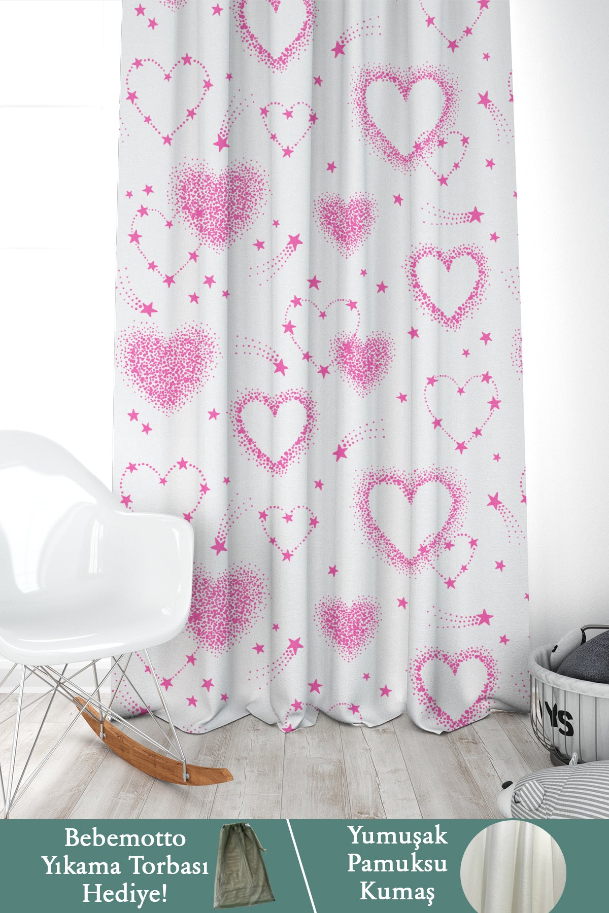 Pembe Kalpler, İthal Kumaş, Çocuk ve Bebek Odası Fon Perde - 2 Kanat - 70*150 Tekrar sipariş verilir ve stokta yoksa gönderilir