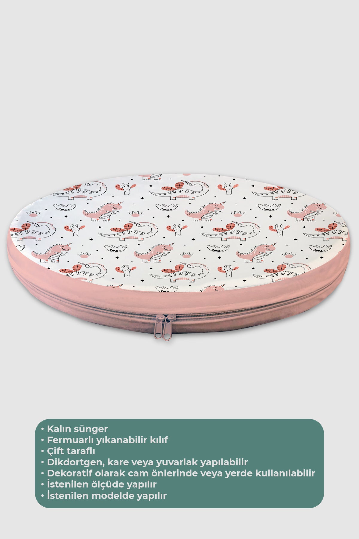Pembe Sevimli Dinazorlar, Yer Minderi - 50*50 Kare Tekrar sipariş verilir ve stokta yoksa gönderilir