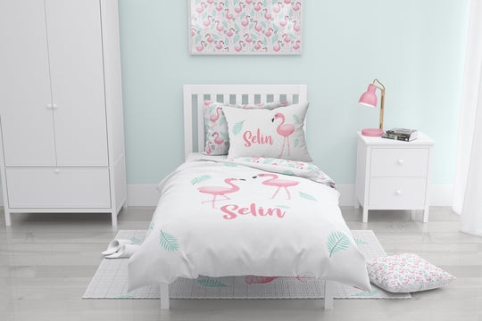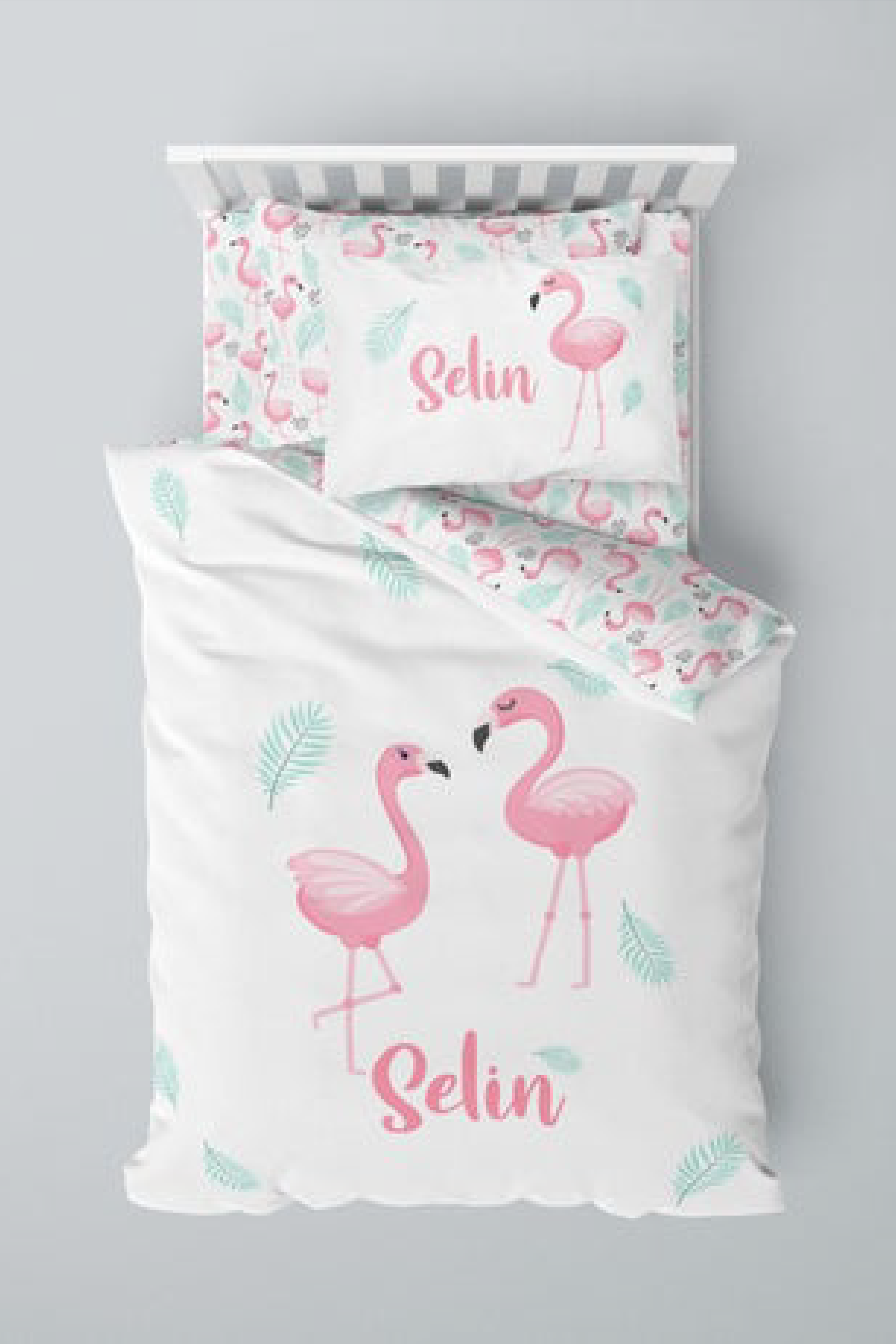 Pembe Flamingo, %100 Pamuk Bebek - Çocuk Nevresim Takımı