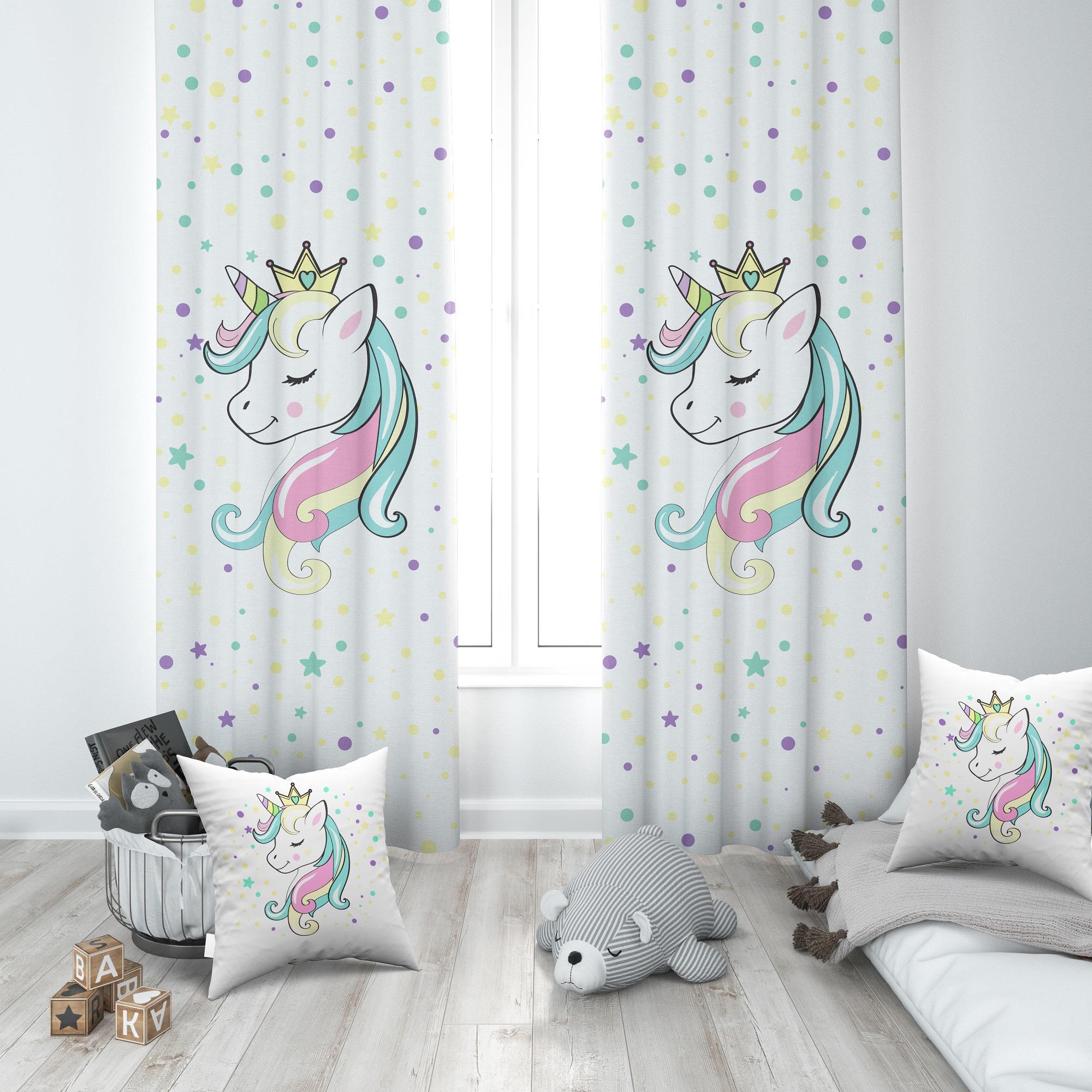 Prenses, Unicorn, İthal Kumaş, Çocuk ve Bebek Odası Fon Perde - 2 Kanat - 70*150 Tekrar sipariş verilir ve stokta yoksa gönderilir