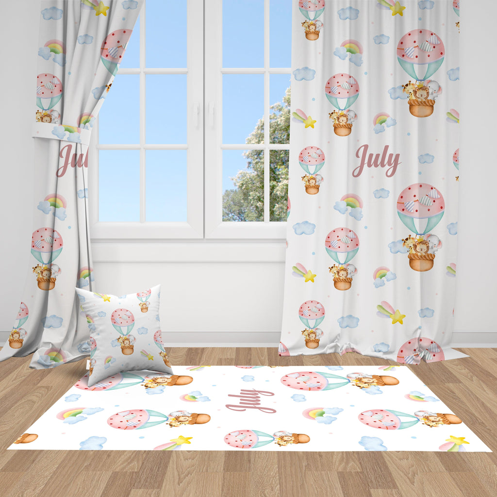 Renkli Balonlar ve Hayvanlar, İthal Kumaş, Çocuk ve Bebek Odası Fon Perde - 2 Kanat - 70*150 Tekrar sipariş verilir ve stokta yoksa gönderilir