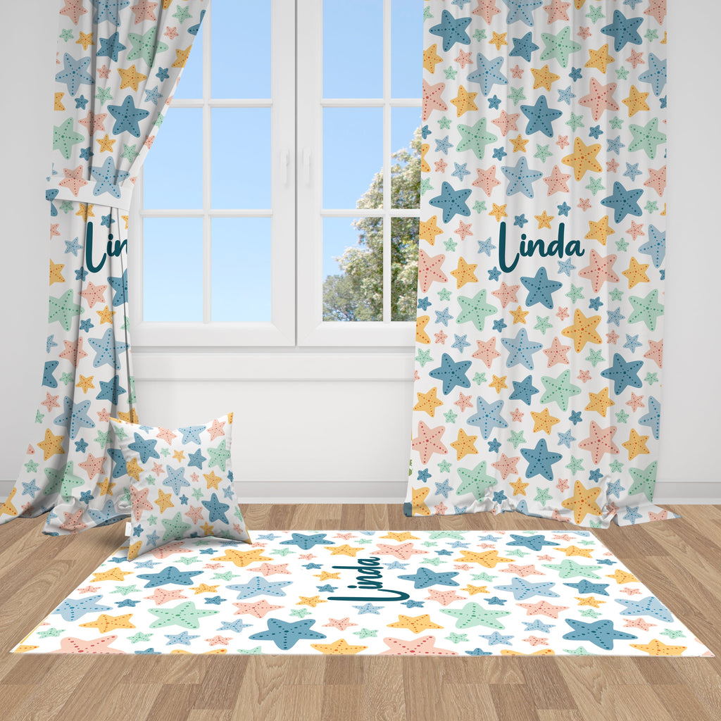 Renkli, Denizyıldızı, İthal Kumaş, Çocuk ve Bebek Odası Fon Perde - 2 Kanat