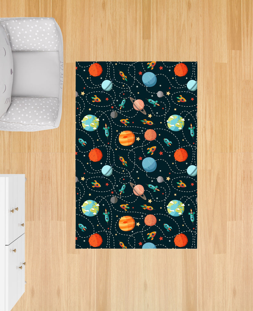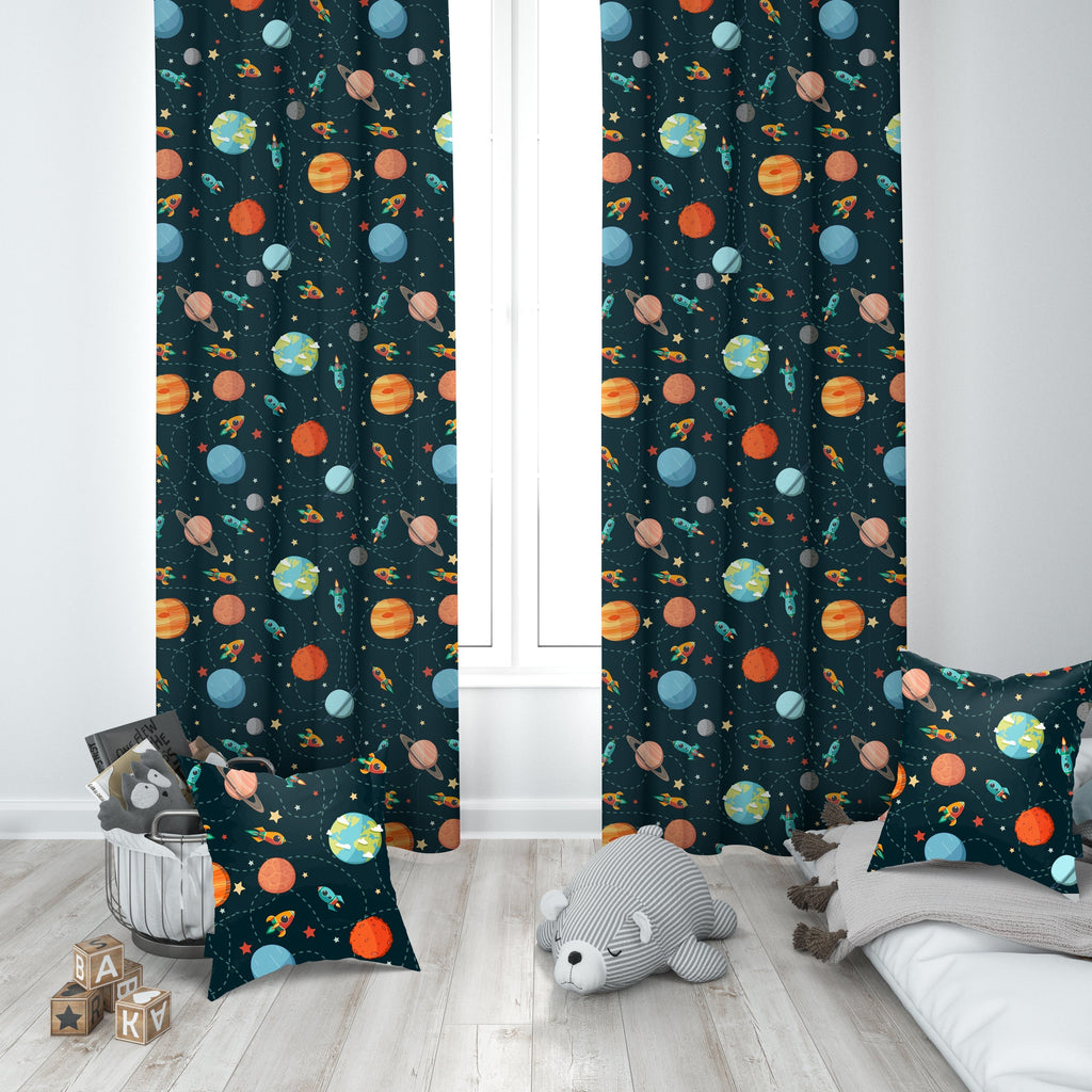 Renkli Gezegenler, Siyah Zemin, İthal Kumaş, İthal Kumaş, Çocuk ve Bebek Odası Fon Perde - 2 Kanat Outlet - 120*150 Tekrar sipariş verilir ve stokta yoksa gönderilir
