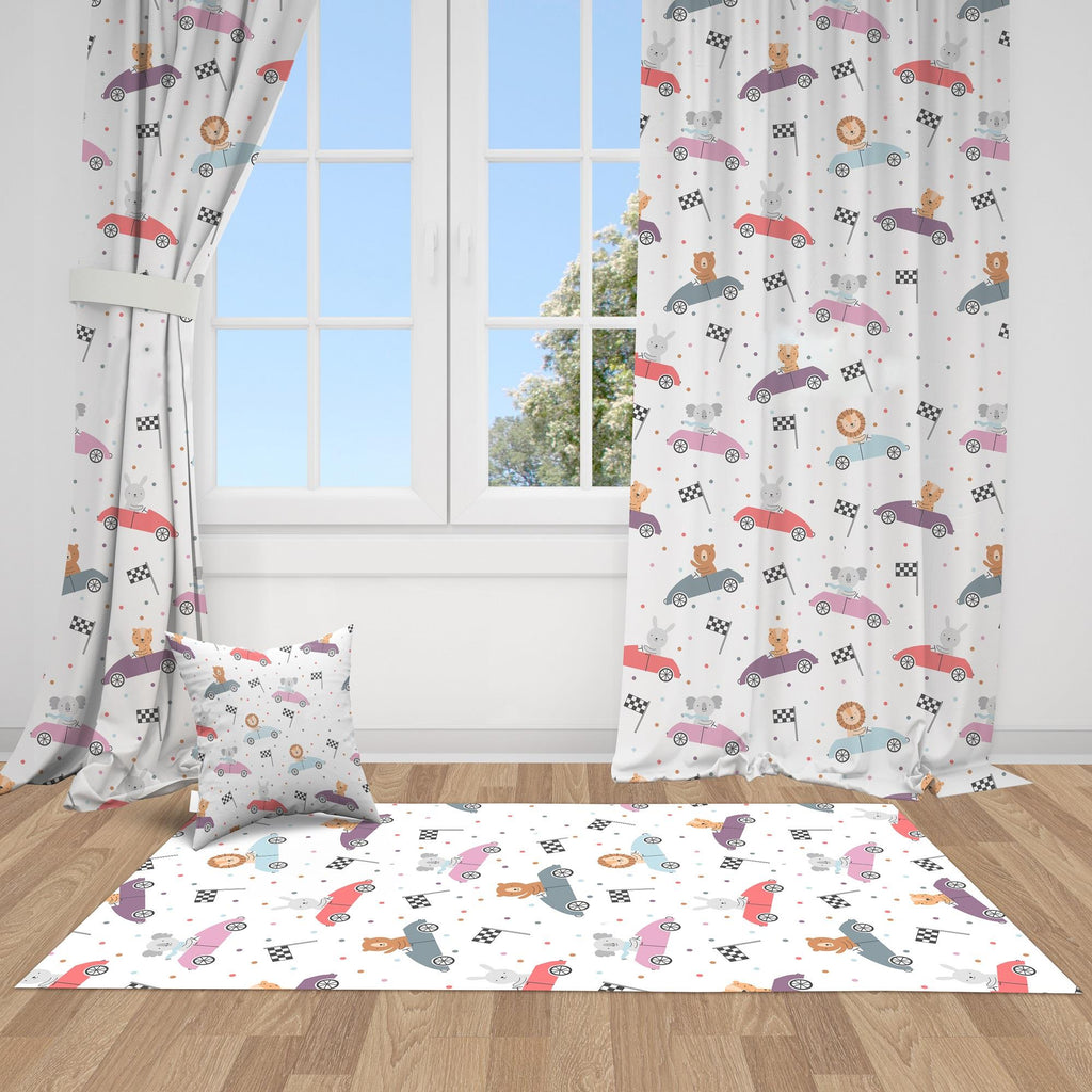 Renkli Yarış Arabaları, İthal Kumaş, Çocuk ve Bebek Odası Fon Perde - 2 Kanat - 70*150 Tekrar sipariş verilir ve stokta yoksa gönderilir