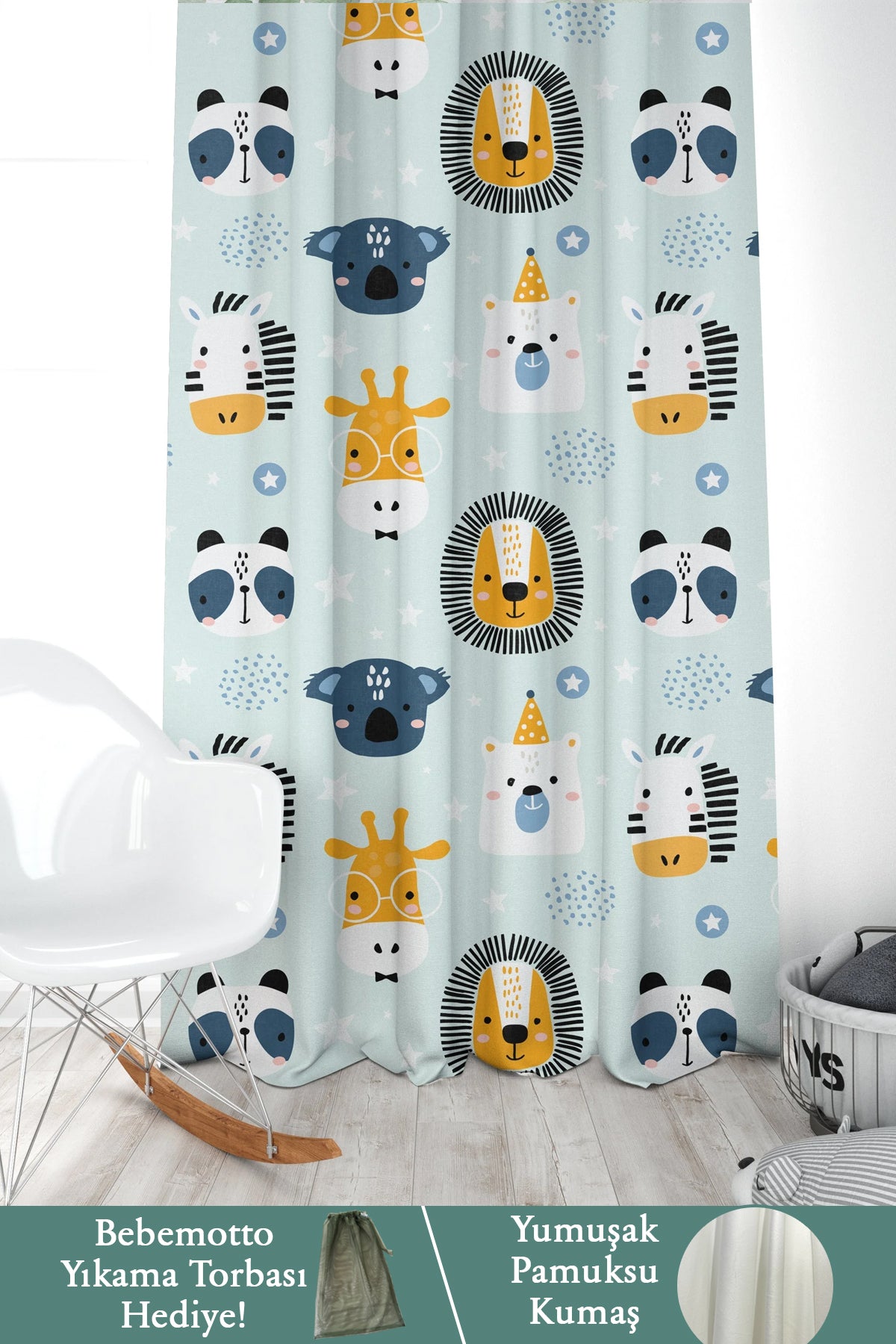 Rustik ,Safari Hayvanları, Aslan, Koala, Zürafa, İthal Kumaş, Çocuk ve Bebek Odası Fon Perde - 1 Kanat Outlet #103 - 140*240 Tekrar sipariş verilir ve stokta yoksa gönderilir