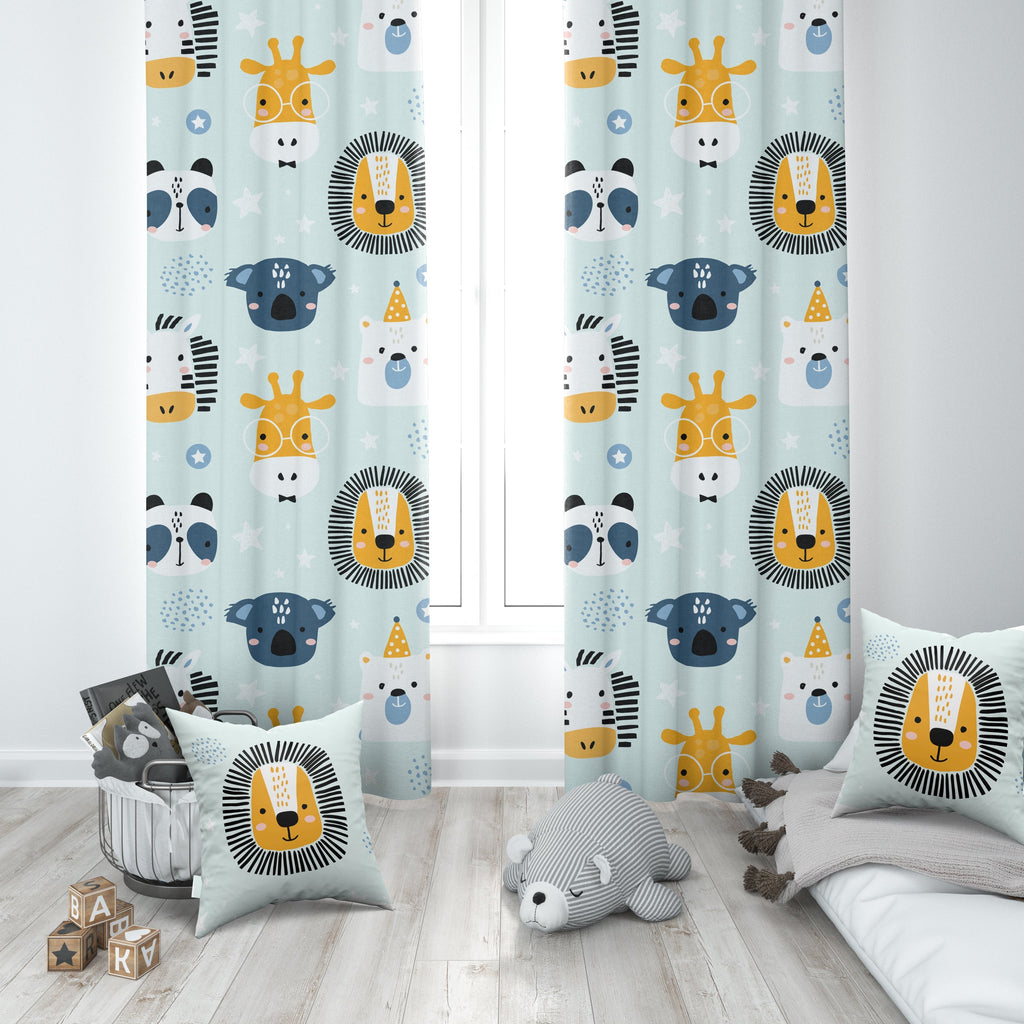 Safari Hayvanları, Aslan, Koala, Zürafa, İthal Kumaş, Çocuk ve Bebek Odası Fon Perde - 2 Kanat - 70*150 Tekrar sipariş verilir ve stokta yoksa gönderilir