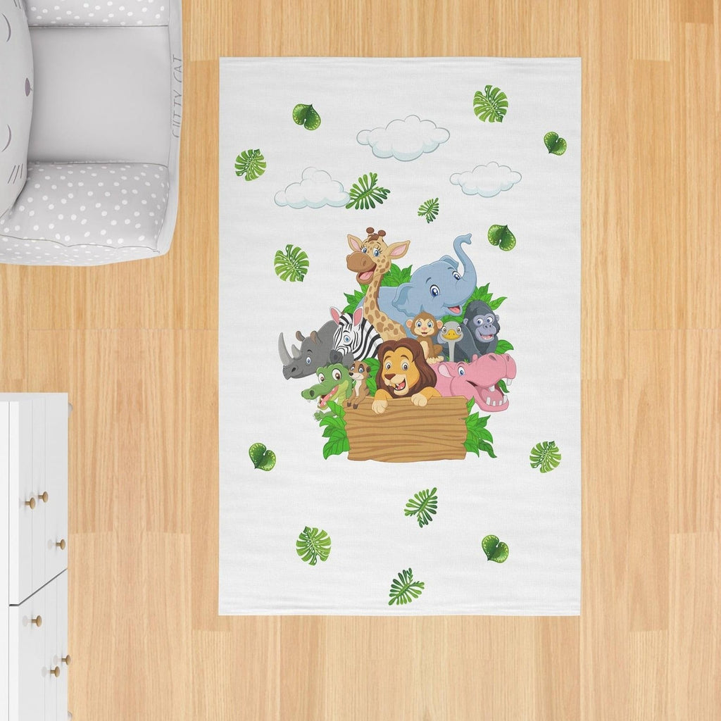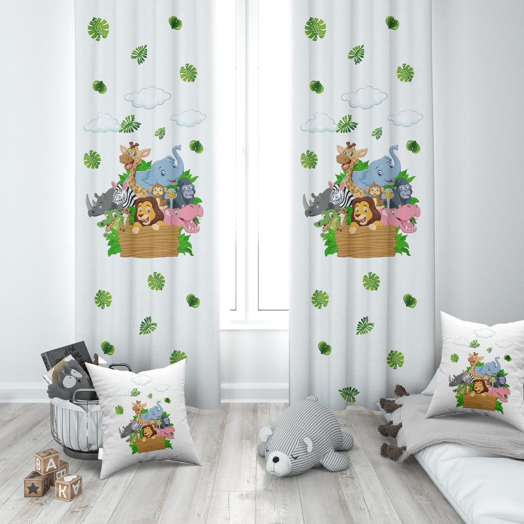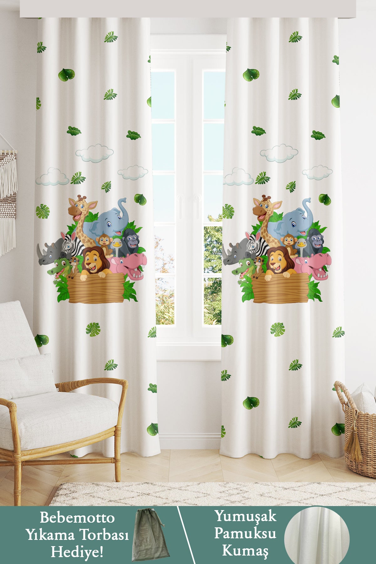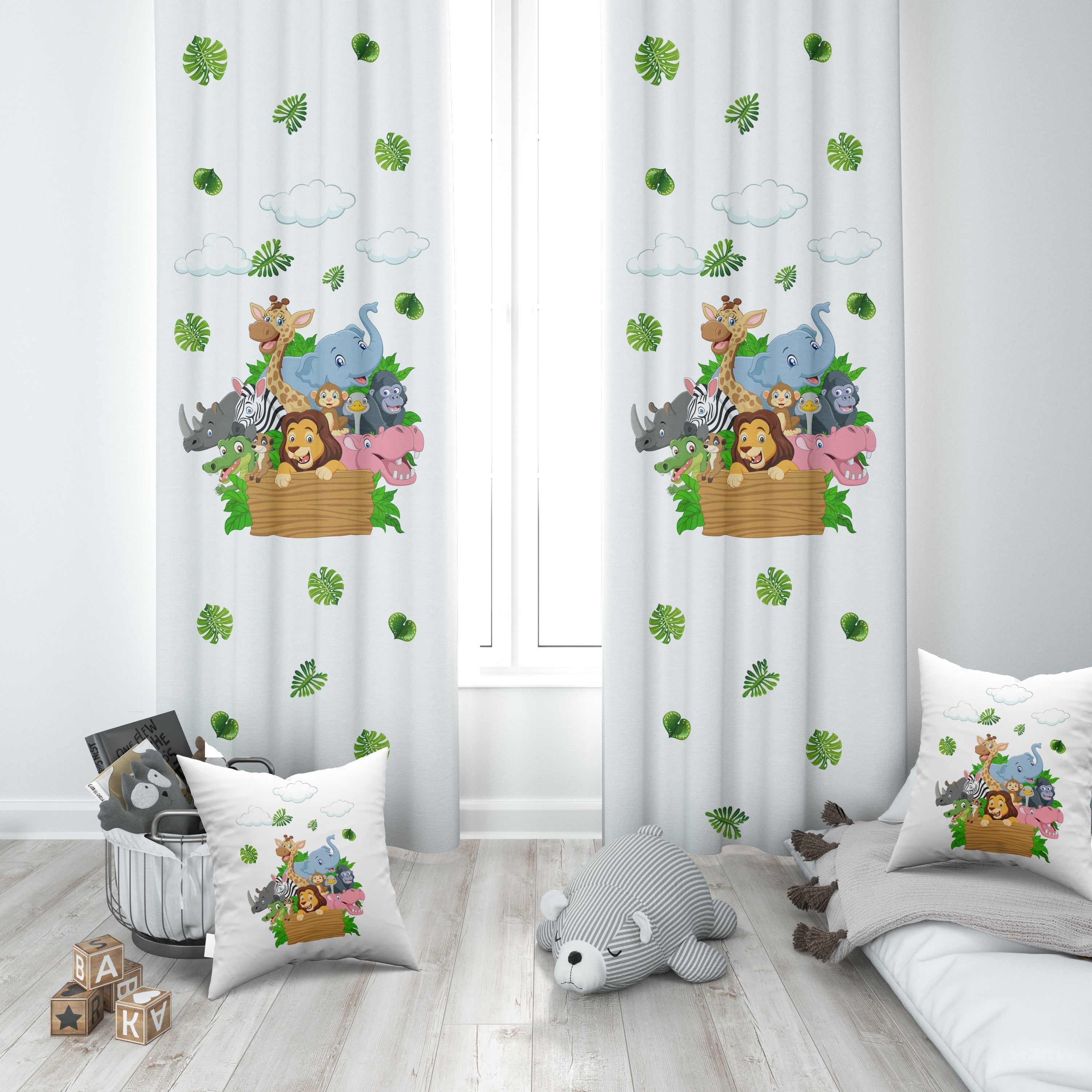 Safari Hayvanları, Aslan, Zürafa, İthal Kumaş, Çocuk ve Bebek Odası Fon Perde - 2 Kanat - 70*150 Tekrar sipariş verilir ve stokta yoksa gönderilir