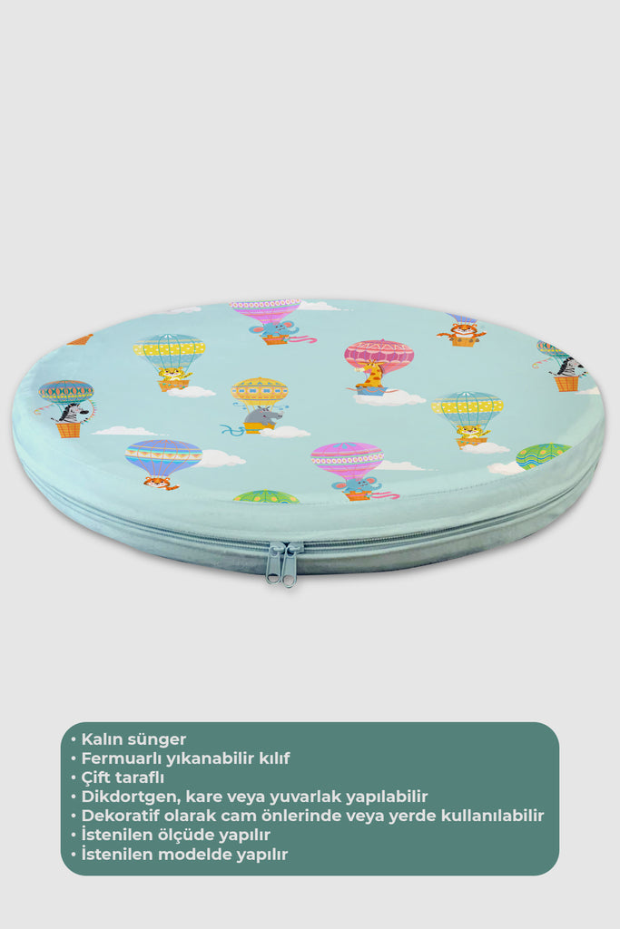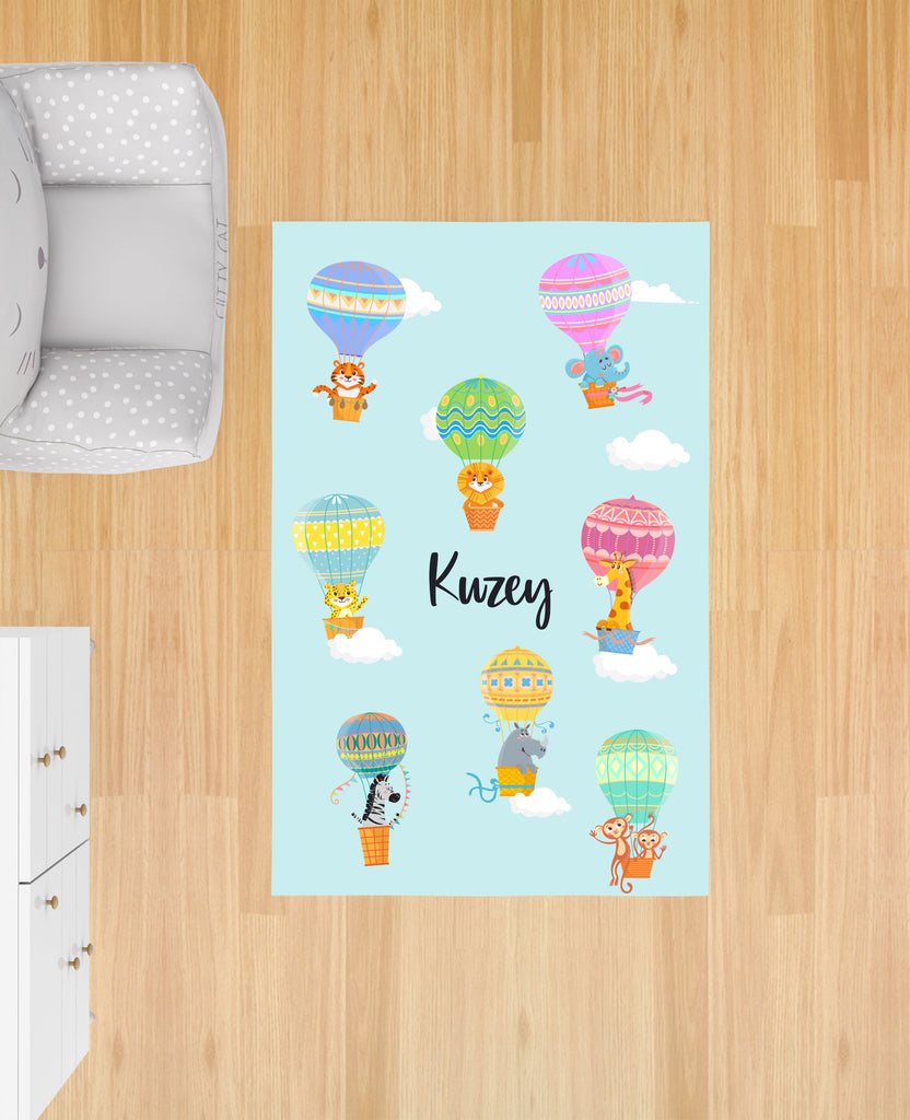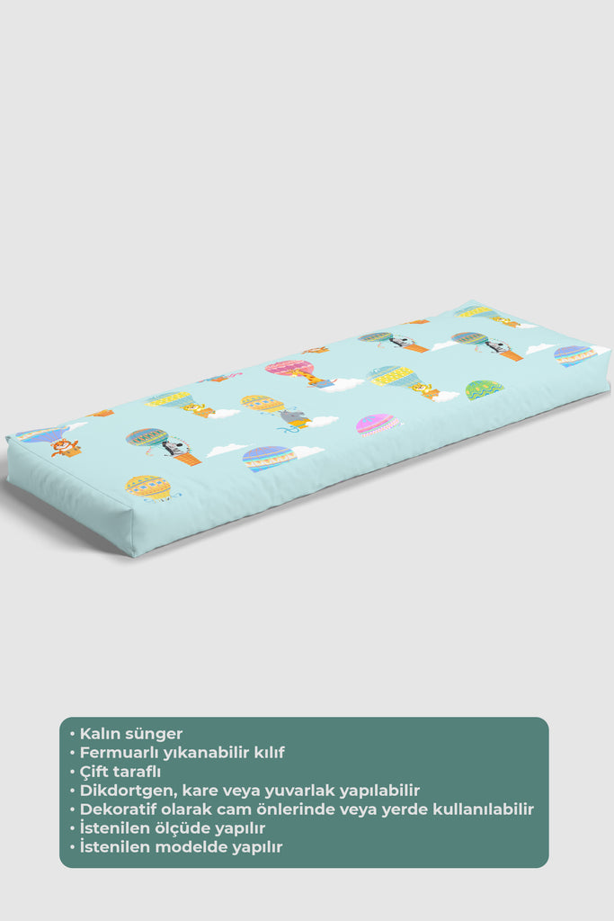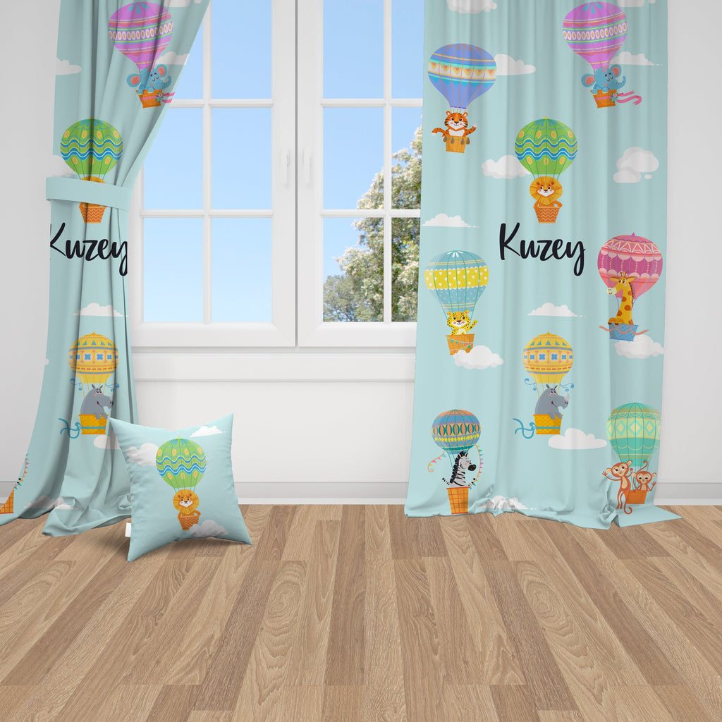 Safari Hayvanları Balonda, Mavi, İthal Kumaş, Çocuk ve Bebek Odası Fon Perde - 2 Kanat - 70*150 Tekrar sipariş verilir ve stokta yoksa gönderilir