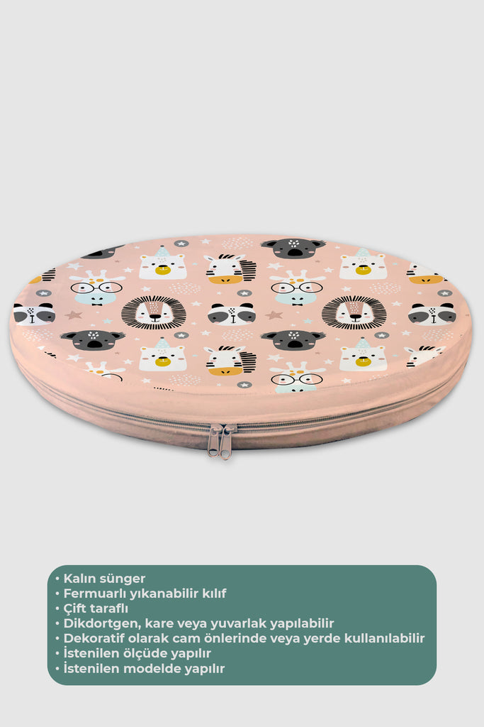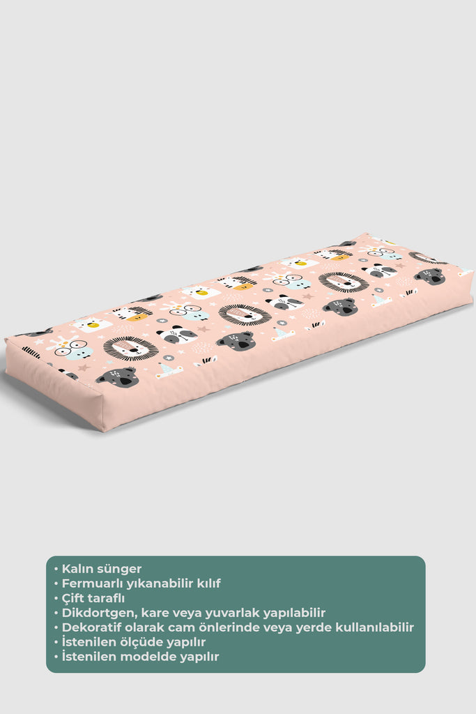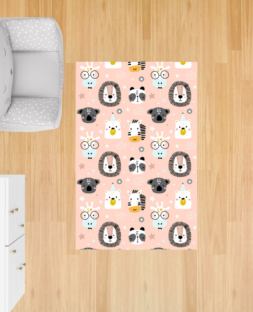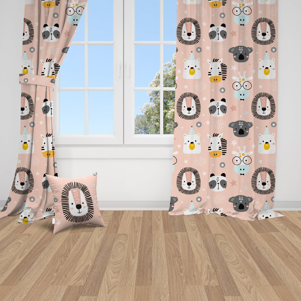 Safari Hayvanları Pembe, İthal Kumaş, Çocuk ve Bebek Odası Fon Perde - 2 Kanat