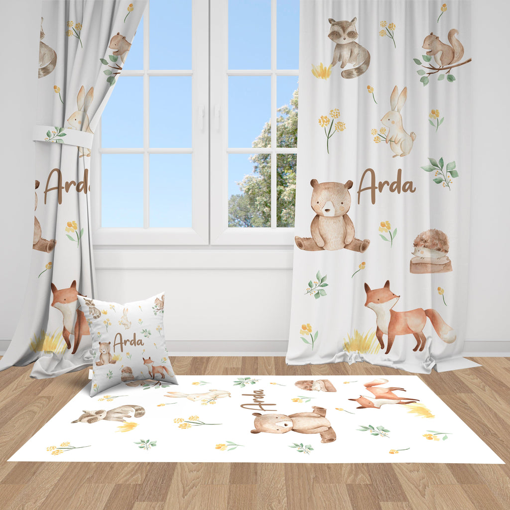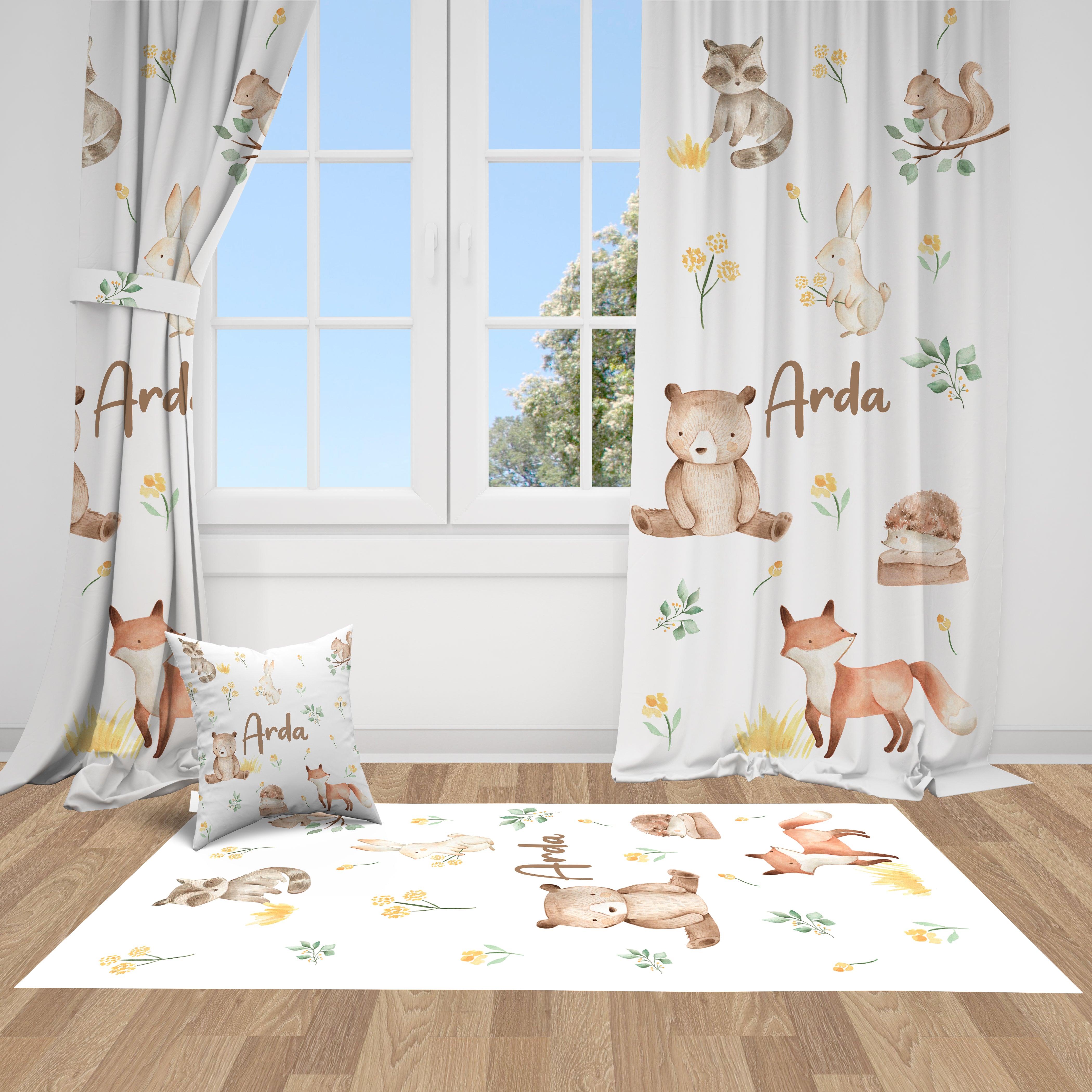 Sevimli Hayvanlar, İthal Kumaş, Çocuk ve Bebek Odası Fon Perde - 2 Kanat - 70*150 Tekrar sipariş verilir ve stokta yoksa gönderilir